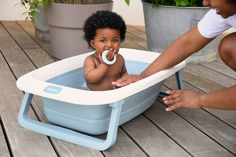 Складные силиконовые туристические ванны Beaba с поп -синим дренажом Eazy Drainage