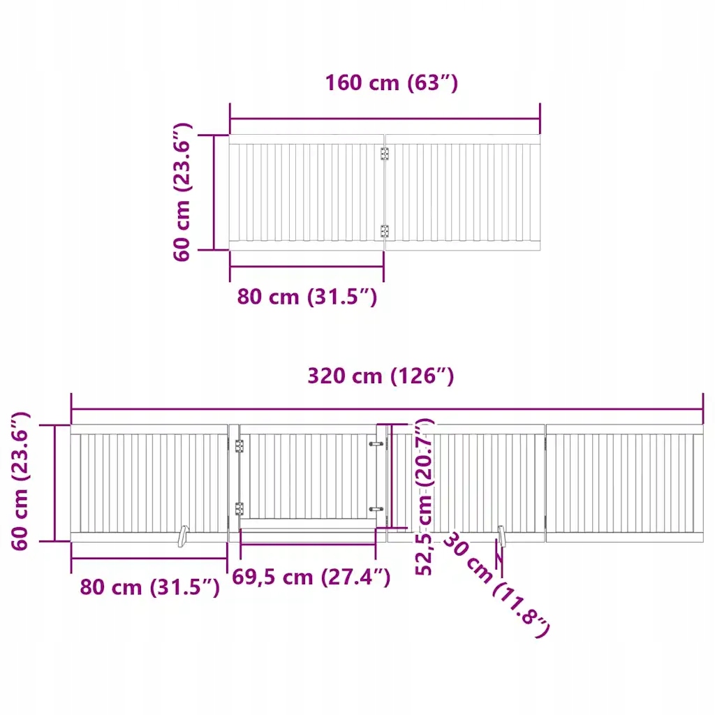 Ворота для собак складные, с дверцей, 6 панелей, черные, 480 см