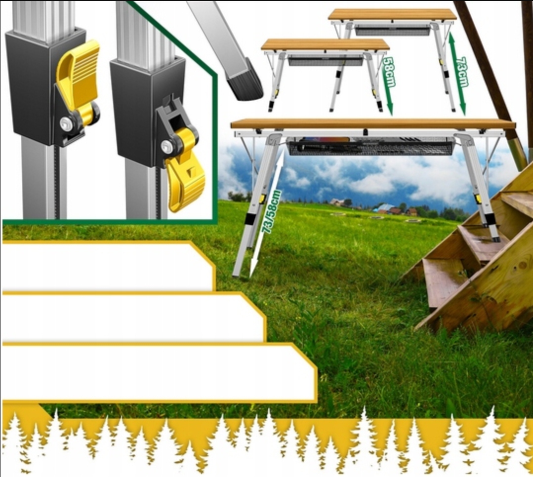 СКЛАДНОЙ АЛЮМИНИЕВЫЙ ПОХОДНЫЙ СТОЛИК С СУМКОЙ И РЕГУЛИРОВКОЙ ВЫСОТЫ