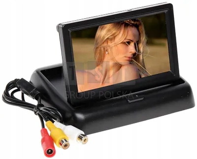 Автомобильный монитор с диагональю экрана 4,3 дюйма с возможностью подключения двух видеоисточников, например камеры заднего вида и портативного DVD. Устройство складывается в горизонтальное положение таким образом, чтобы занимать минимальное пространство