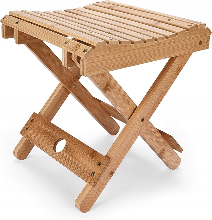 - А поскольку он складной, его можно легко убрать, когда он не нужен. Табурет изготовлен из прочного бамбука, его можно легко сложить и хранить. Он имеет удобное сиденье с изогнутой спинкой и поэтому идеально подходит для душа или ванны.