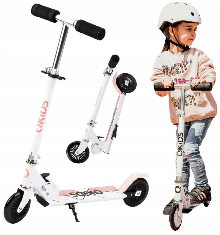 Hulajnog для детей, сложенных QKIDS. Регулировка ног белых розовых ног ABEC-7