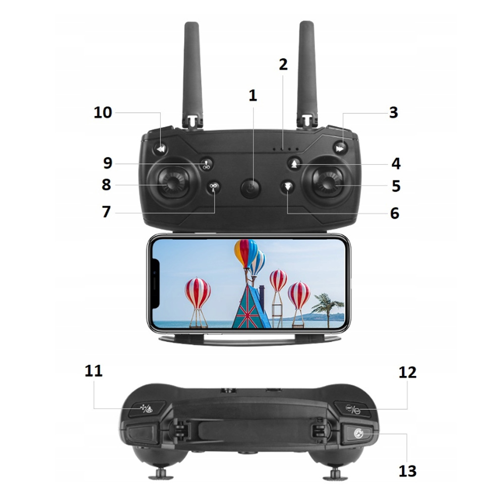 Дрон оснащен новейшей WIFI HD-камерой с передачей FPV (изображение в реальном времени). Изображение с камеры передается на смартфон под управлением Android или iOS. Приложение доступно для Android и iOS. Установите приложение или отсканируйте QR-код, доступный в руководстве пользователя дрона, и запустите предварительный просмотр изображения в реальном времени.