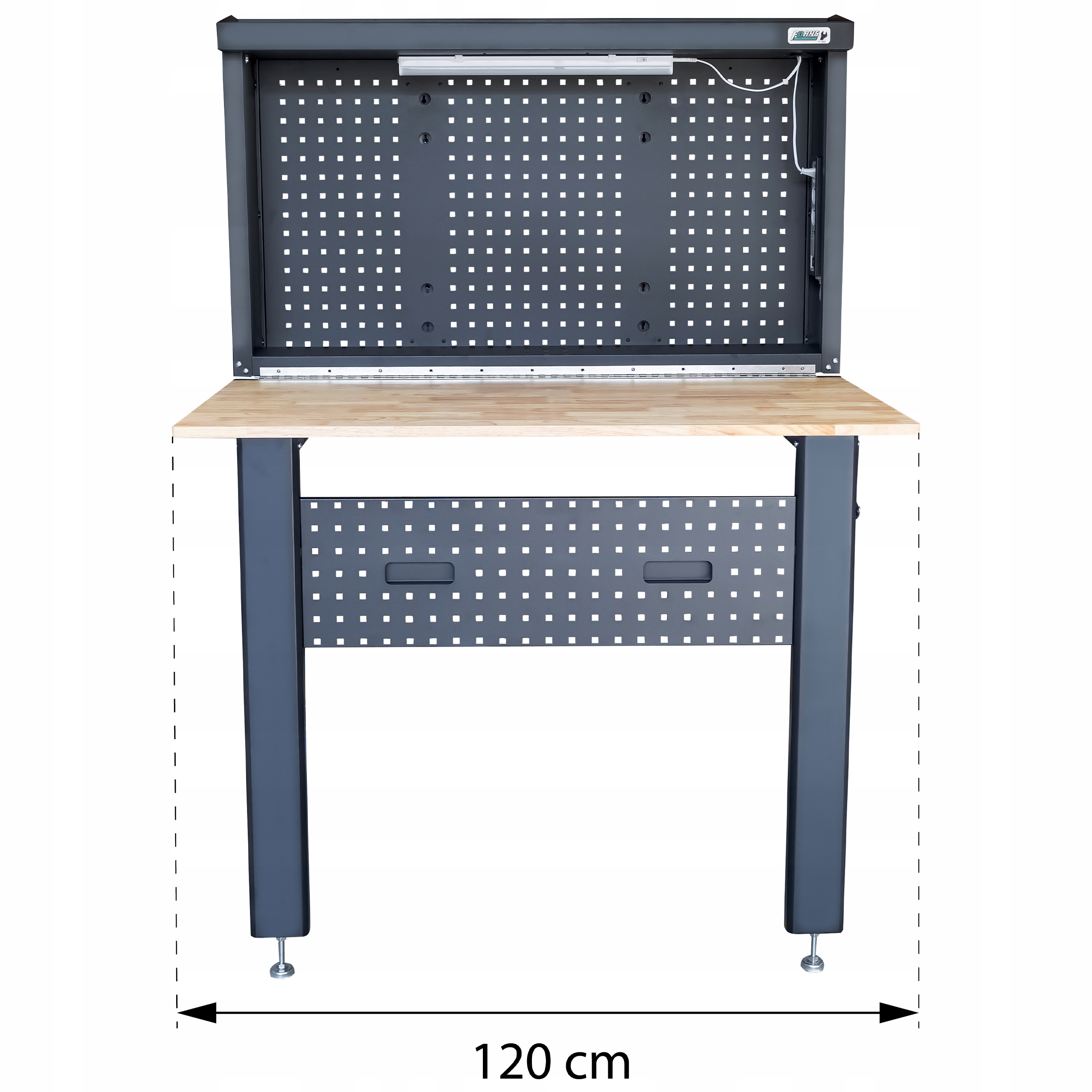 Комплект В комплект входит: подвесной шкаф с перфорированной доской для инструментов, деревянная столешница, светодиодный светильник и 15 крючков (14 одинарных и 1 двойной), что гарантирует полную функциональность.
