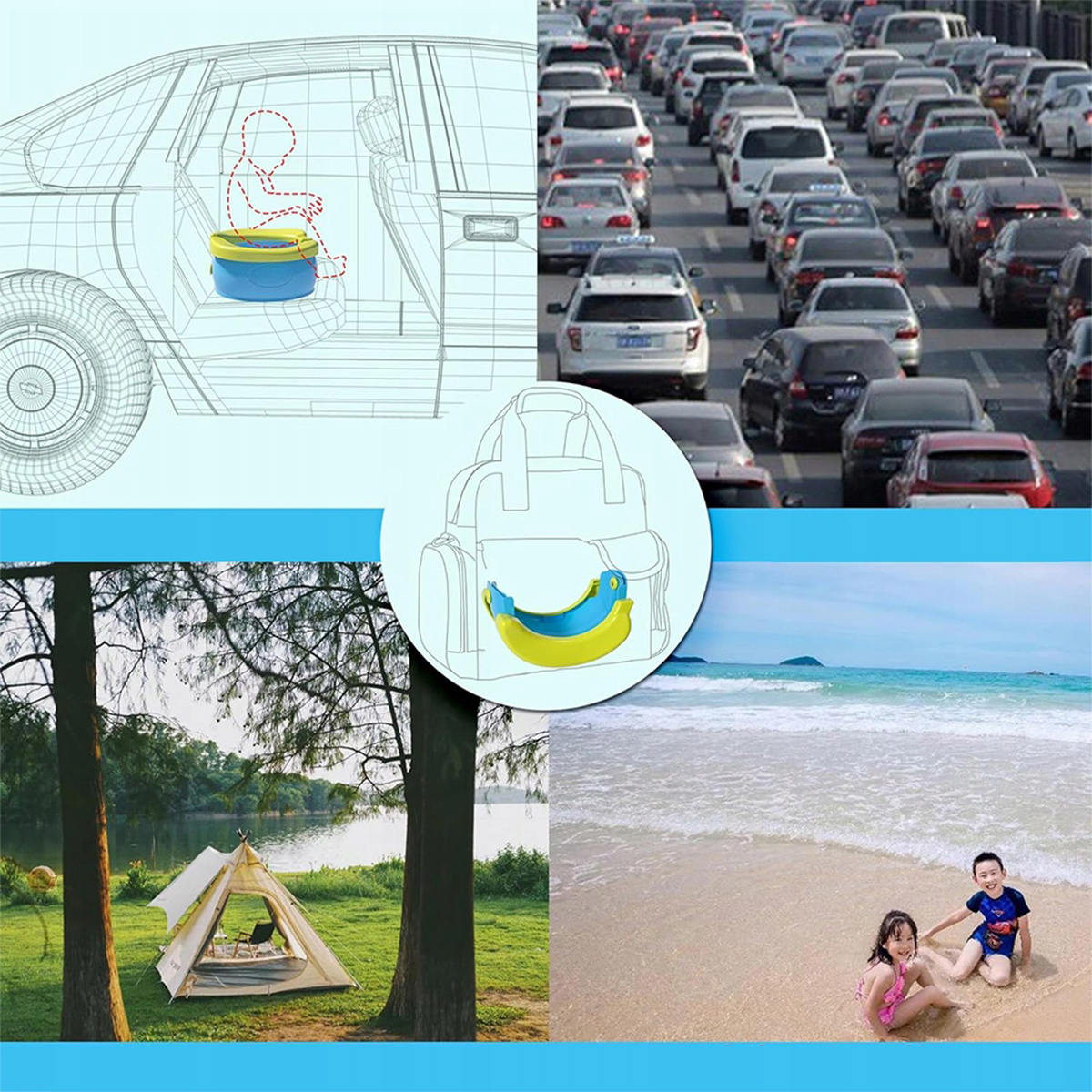 ⭐【ИСПОЛЬЗОВАНИЕ】 Этот плавающий детский туалет небольшой, его можно носить в сумке. Часто используемый в автомобилях, парках и других местах на открытом воздухе, он идеально подходит для снятия неприятностей и беспокойства во время путешествия.