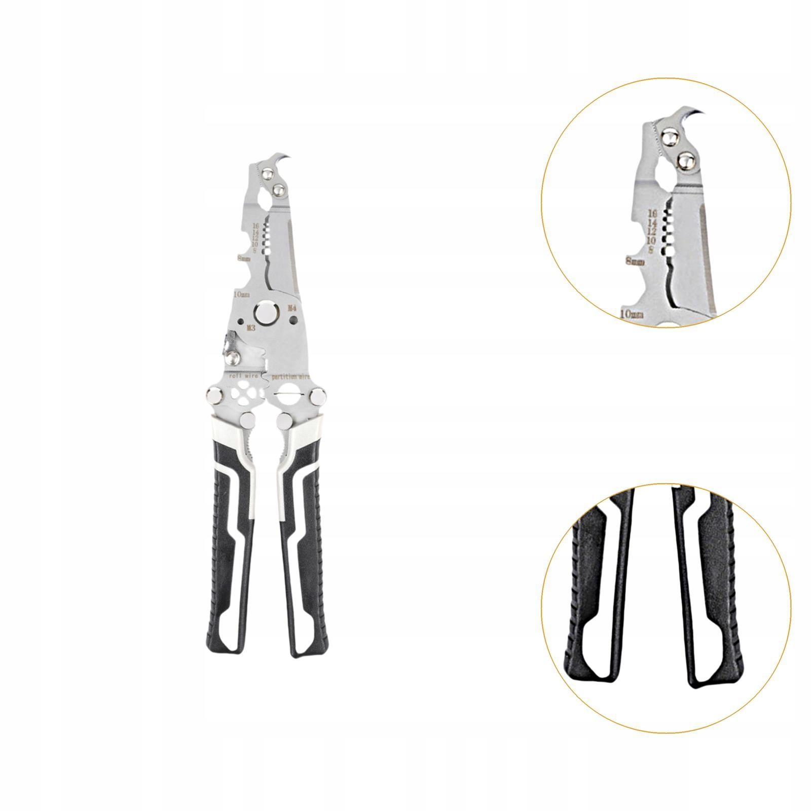 [Многофункциональная интеграция]: этот кабельный инструмент сочетает в себе несколько функций, таких как захват, резка, разрыв проводов, разделение линий, намотка проводов, зачистка компонентов и обжатие, в эффективное устройство для повышения эффективности работы.