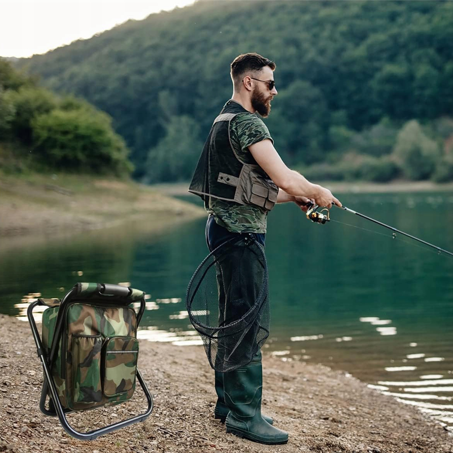 СКЛАДНИЙ КАМУФЛЯЖНИЙ РИБАЛЬСЬКИЙ КРІСЕЛЬ 2В1 РИБАЛЬСЬКИЙ РЮКЗАК З ТЕРМОСУМКОЮ