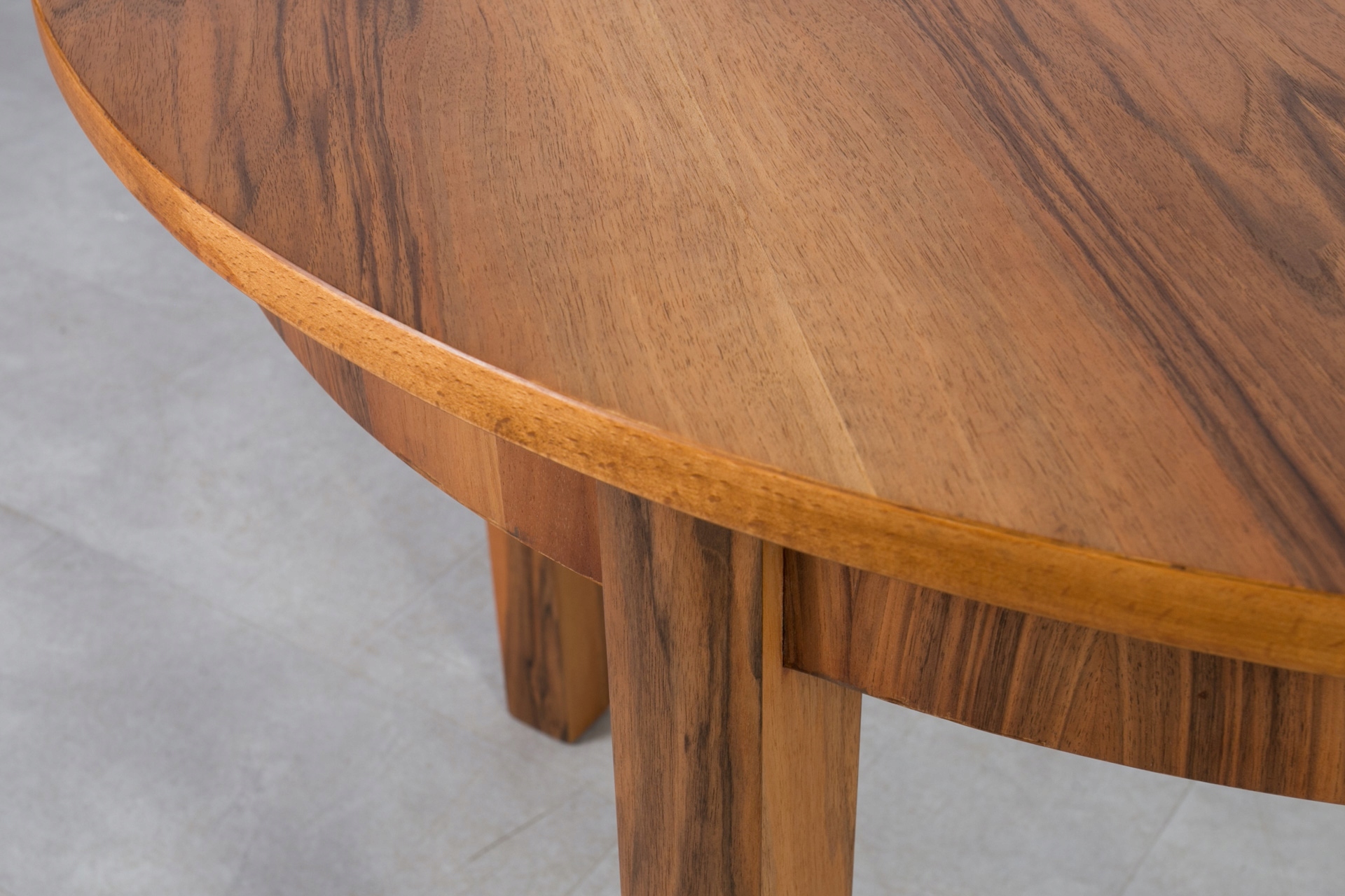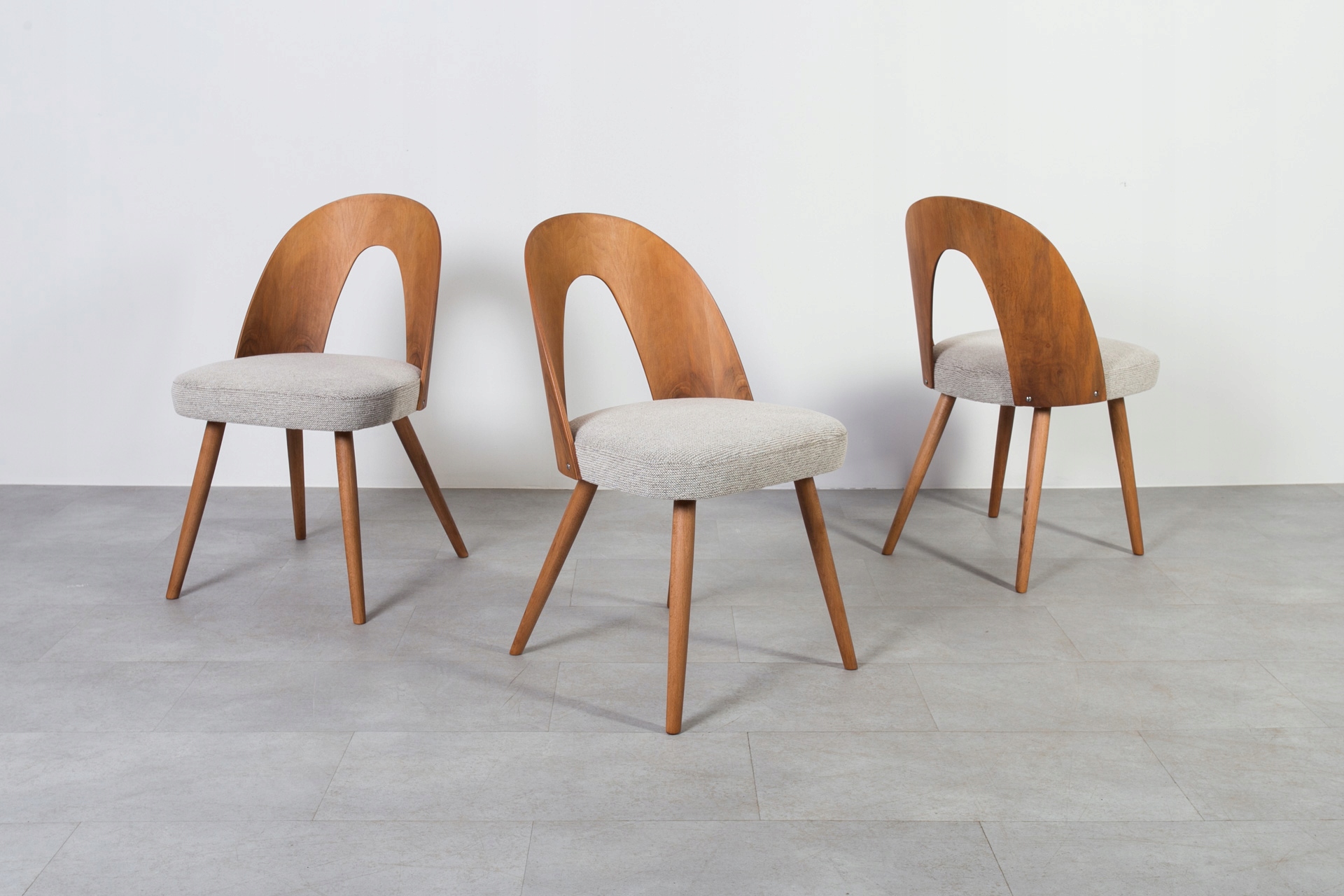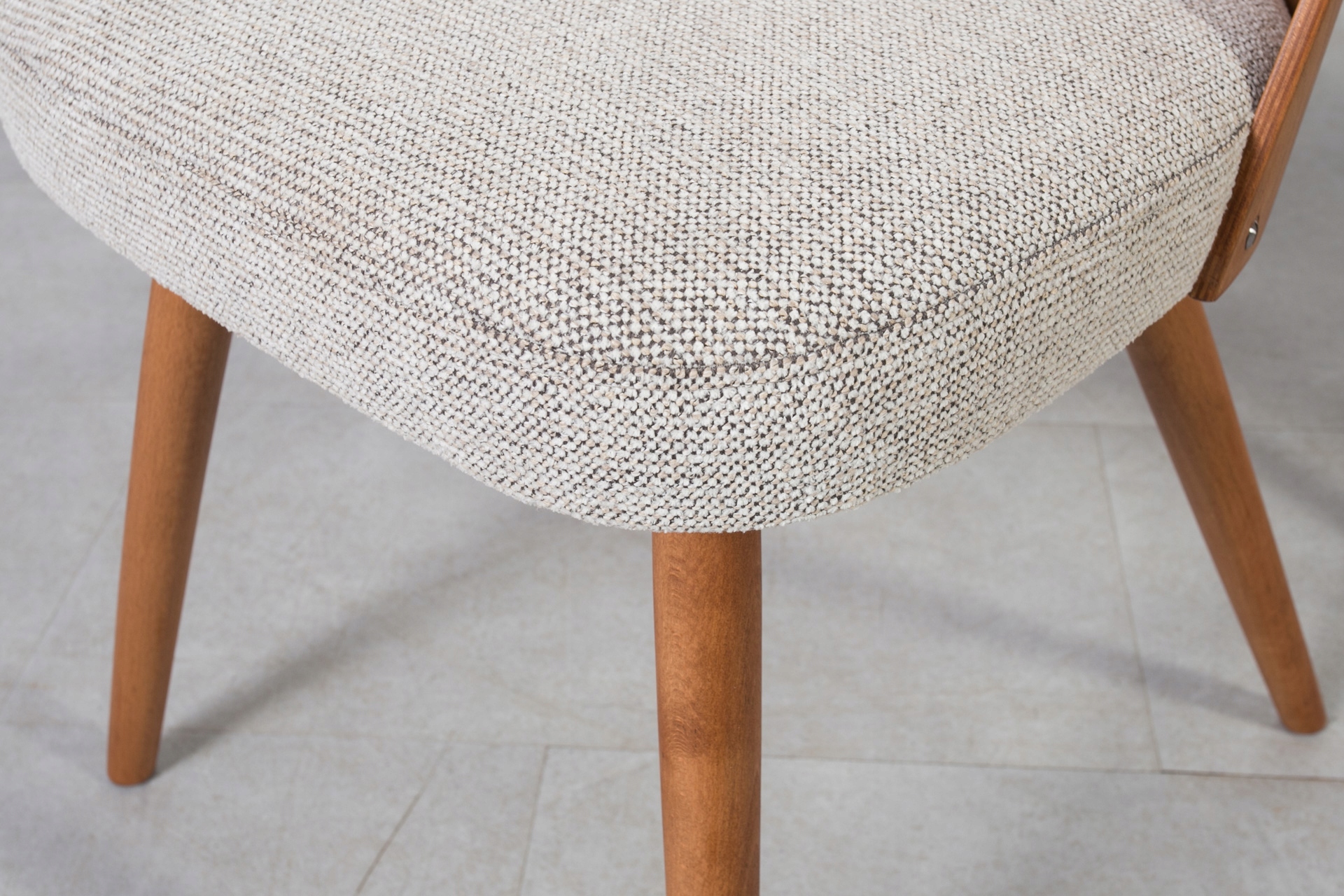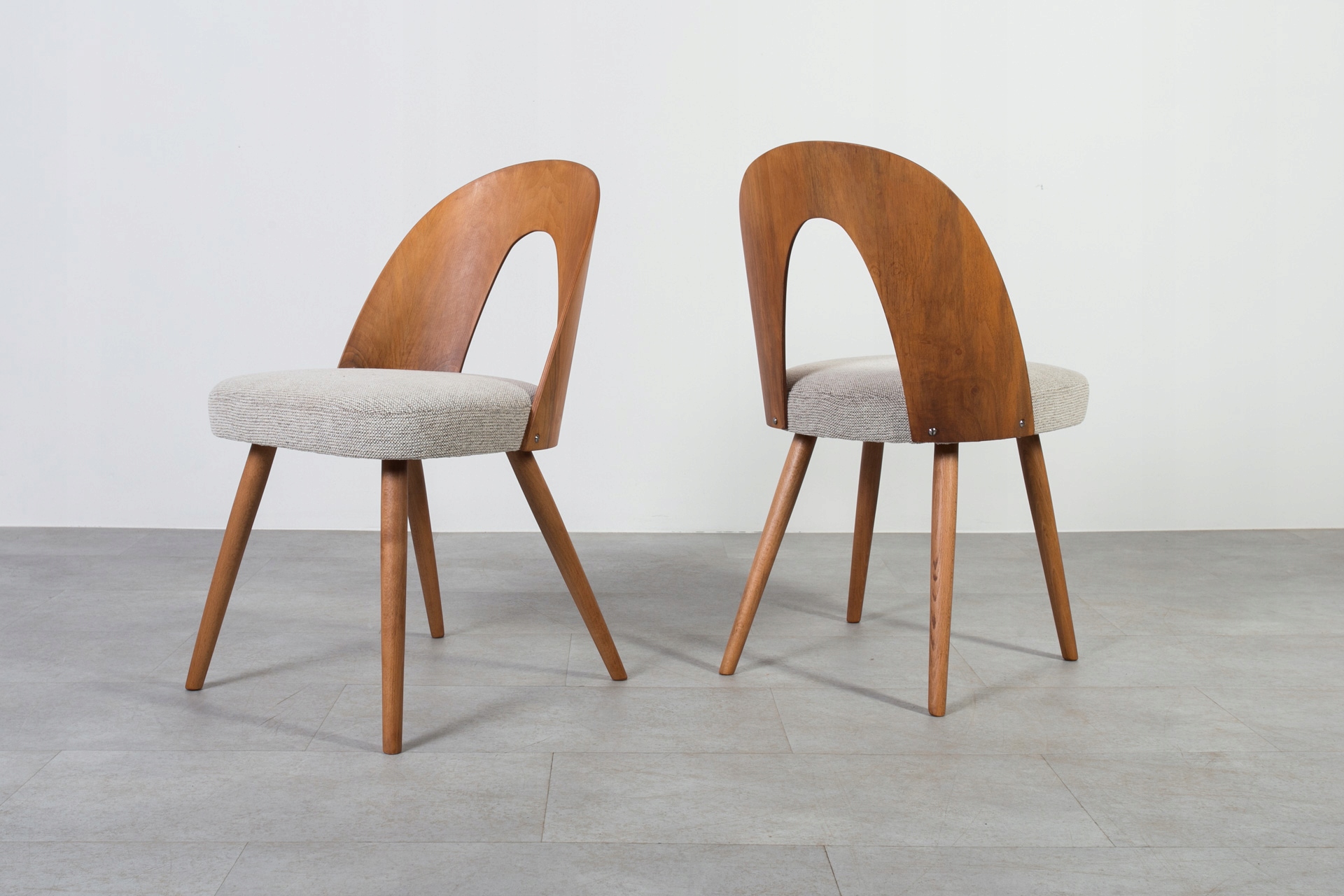 Этот уникальный обеденный набор состоит из элегантного, круглого, складного стола и четырех оригинальных винтажных стульев, разработанных Антонином Шуманом. Это прекрасный пример лучшего чешского дизайна 1960 -х годов, оцененный за вечную элегантность и функциональность. Весь набор был тщательно восстановлен, с оригинальным персонажем и очарованием винтажа. Деревянные поверхности были очищены и отделаны маслом, что не только защищает древесину, но и дает ему гладкую и естественную отделку. Все четыре стула были переоборудованы с элегантной бежевой тканью. Эргономичный дизайн стульев выдающимся Антонином Шуманой обеспечивает исключительный комфорт сидения. Следует помнить, что, хотя набор был тщательно восстановлен, это оригинальная винтажная мебель и может носить небольшие следы патины или использование - это не новые предметы.