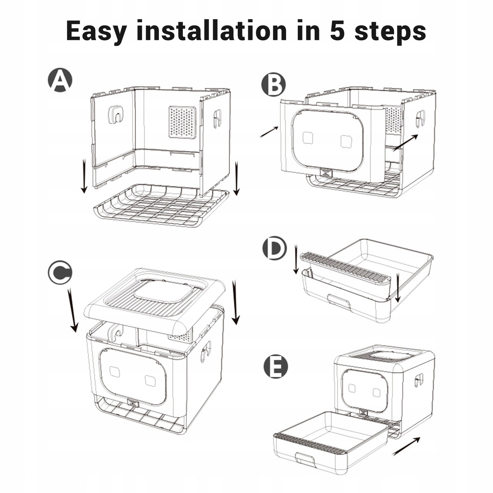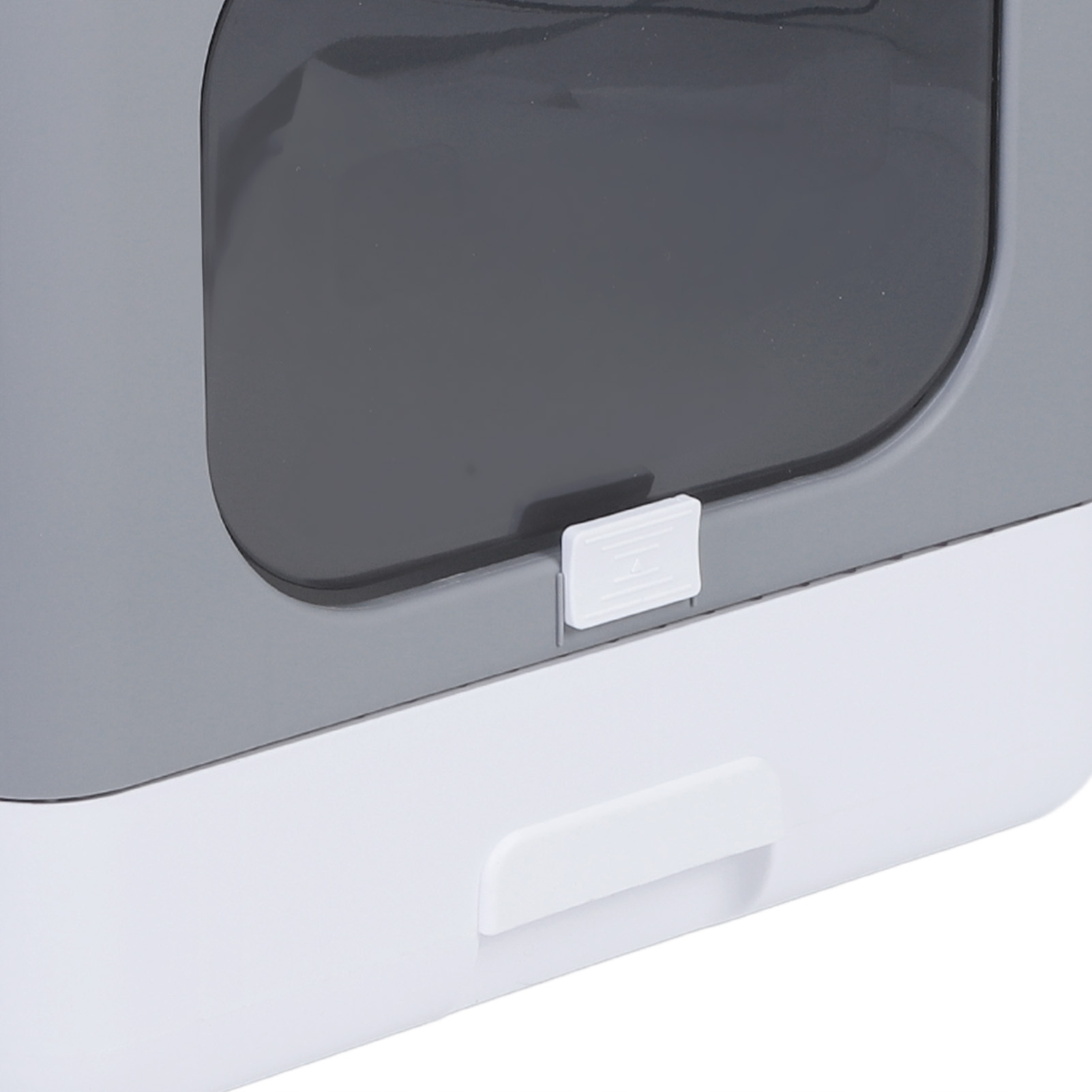 2. Эффективный контроль запаха: закрытая конструкция кошачьего туалета эффективно улавливает и контролирует запахи, предотвращая их распространение по дому. Эта функция не только поддерживает свежесть и чистоту окружающей среды, но также гарантирует, что в вашем жилом помещении не будет запаха, что устраняет необходимость в постоянном обслуживании и освежителях воздуха.