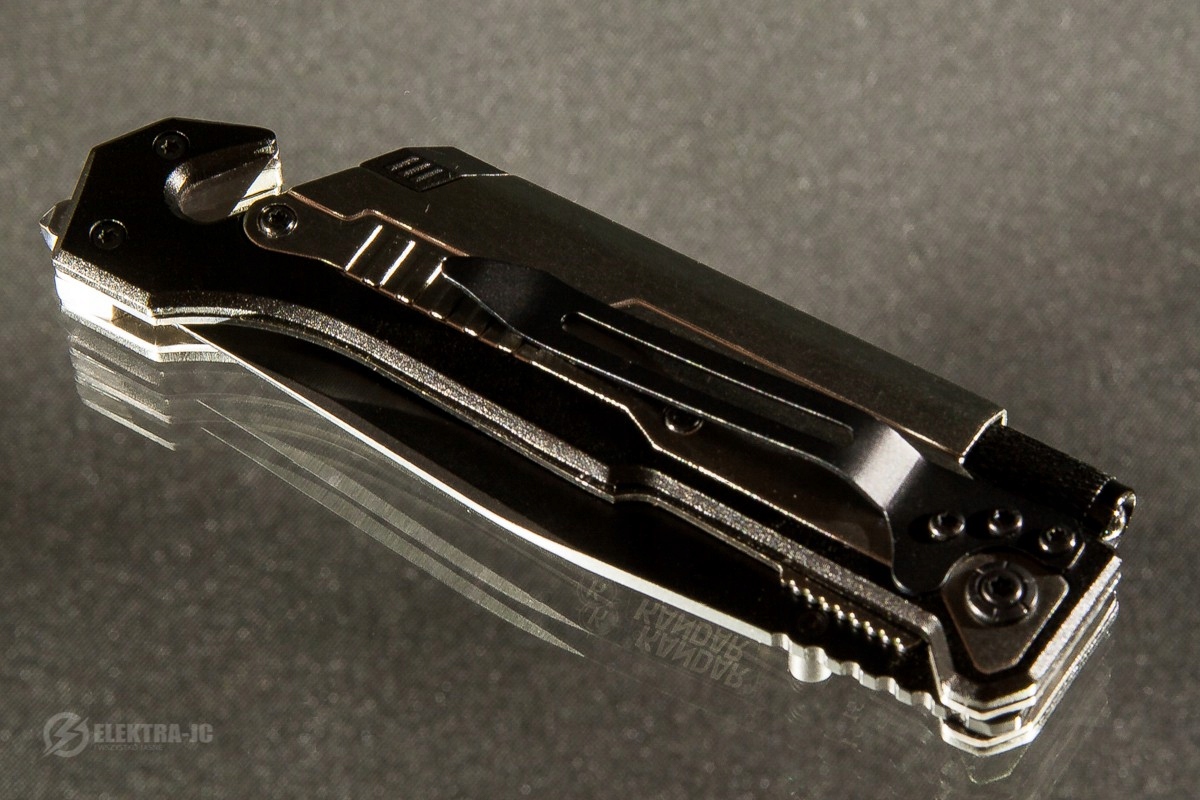 В дополнение к стандартному лезвию, нож имеет резак для ремня, ветровое стекло, мяч, светодиодный фонарик и магниевый тидер.
