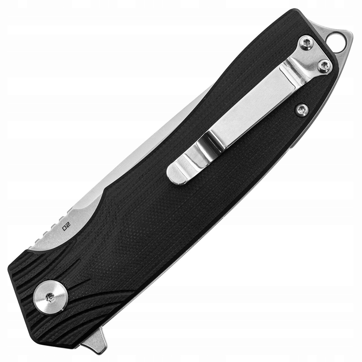 Облицовка ручки изготовлена из черного ламината G10, состоящего из слоев стекловолокна, залитых эпоксидной смолой. Нескользящая текстура накладок и выемка для указательного пальца гарантируют надежный хват.