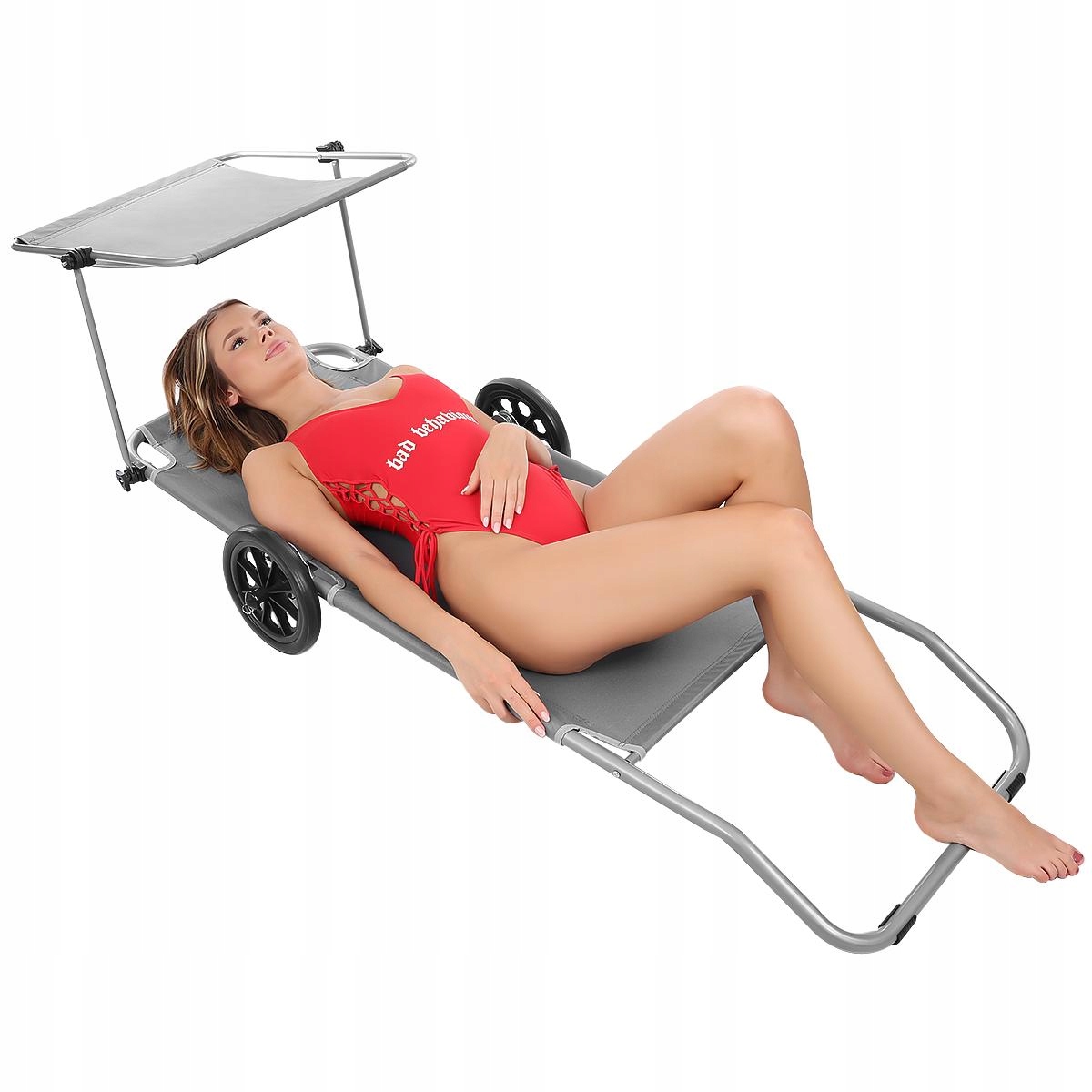 СКЛАДНОЙ пляжный шезлонг на колесах с навесом, регулируемой спинкой и подушкой.