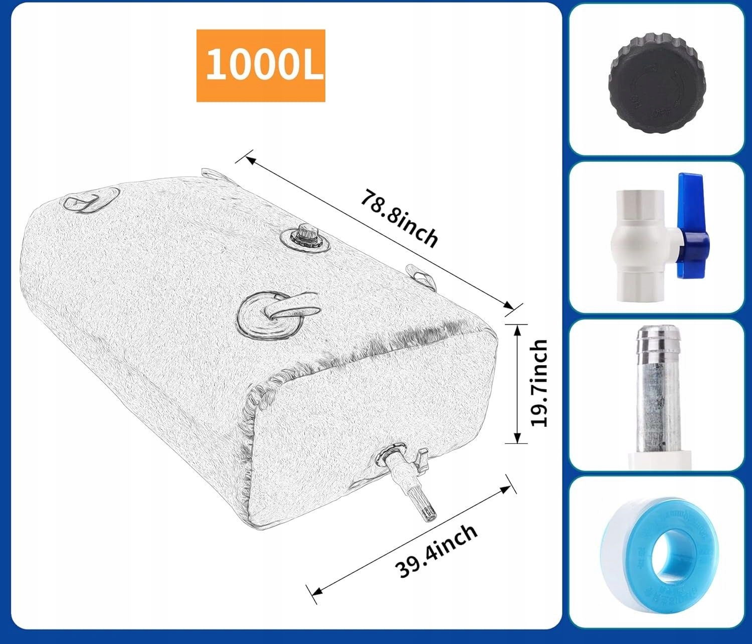 - Емкость 1000 л, идеально подходит для большого количества воды