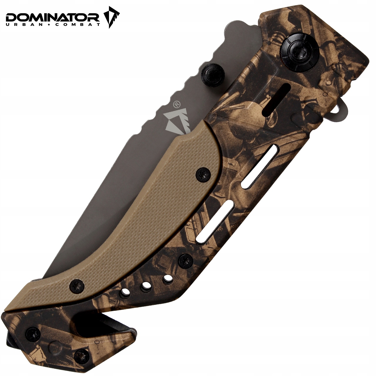 Нож Dominator UC 6-49 Tech-Gold — складной спасательный нож, изготовленный из нержавеющей стали 440, отличающийся передовыми технологиями и прочными материалами. Бренд DOMINATOR UC® гарантирует высочайшее качество изготовления, основанное на военных спецификациях.