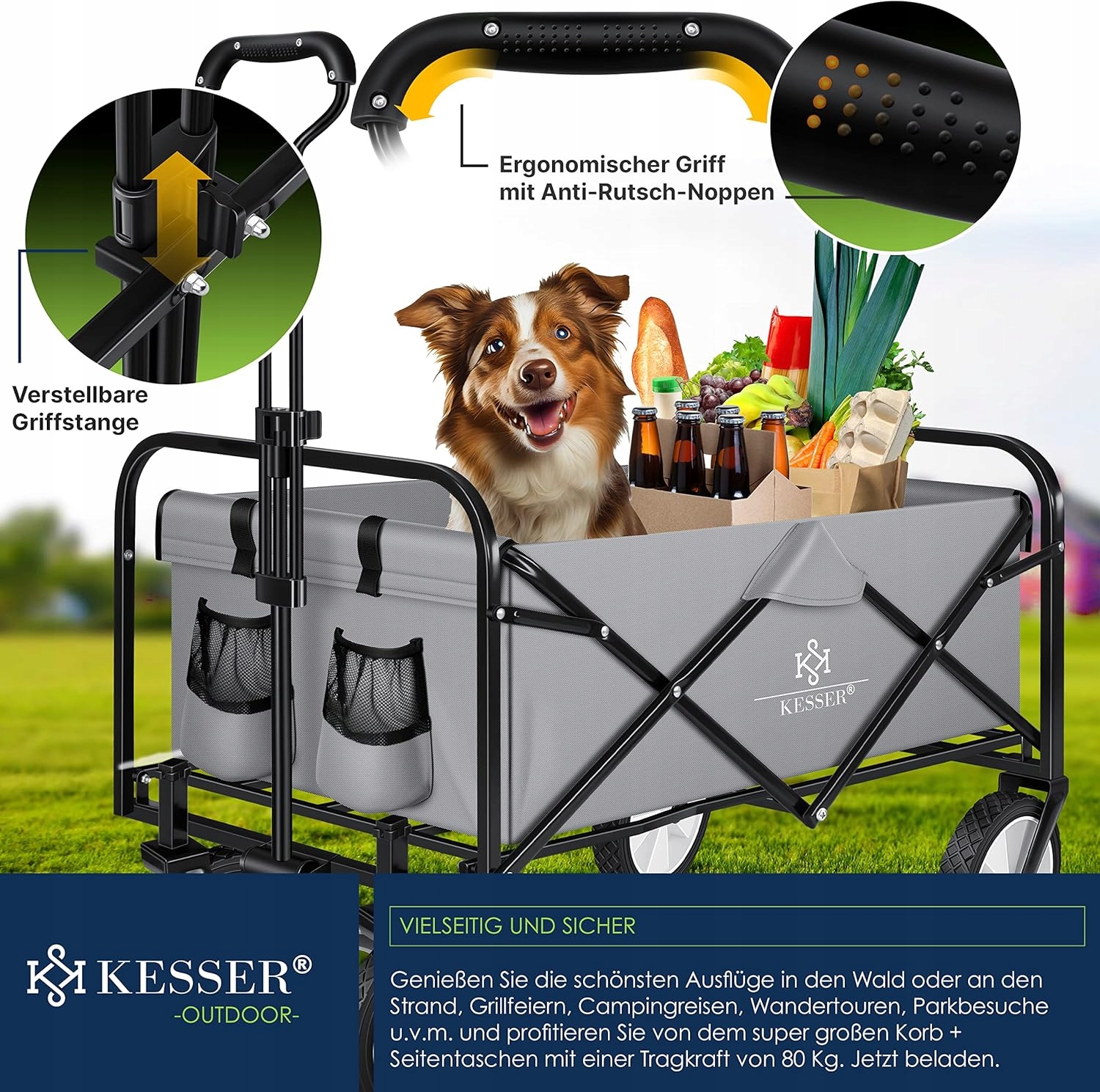kesser® Складная ручная тележка, транспортная тележка, инструментальная коляска, 2 сетчатые карманы и крышка, складки, шины из ПВХ, грузоподъемность до 80 кг, транспортный тележки, садовый трейлер