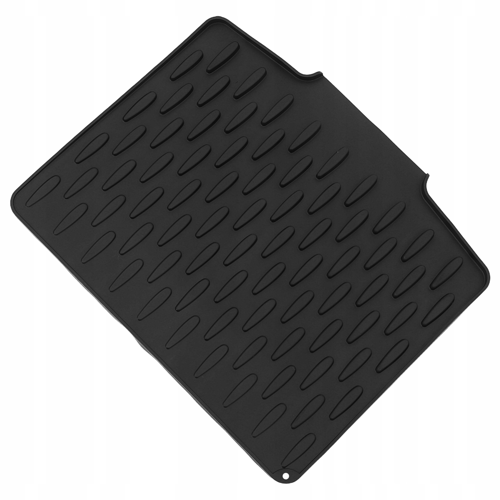Складной черный силиконовый дренажный коврик с желобками для быстрого высыхания.