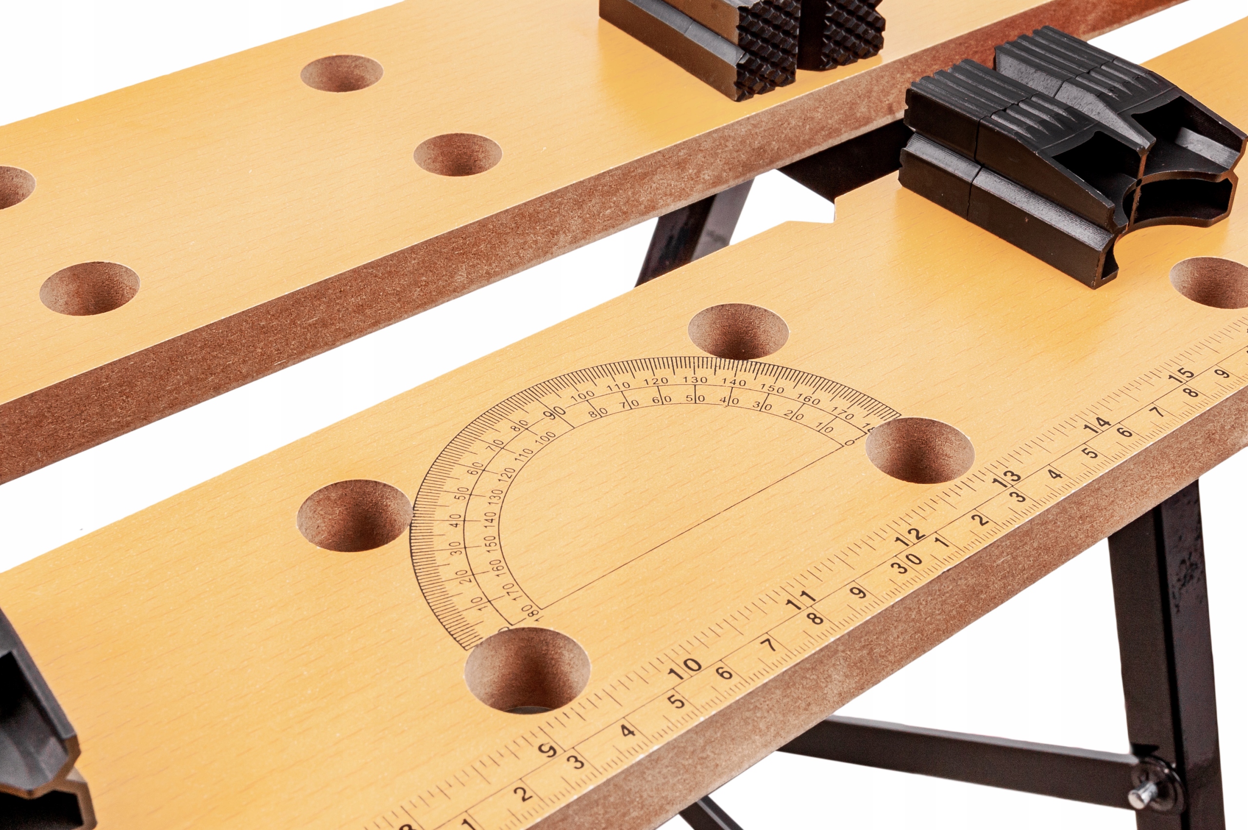 - регулировка положения прижимных губок путем перемещения их в соответствующие отверстия столешницы