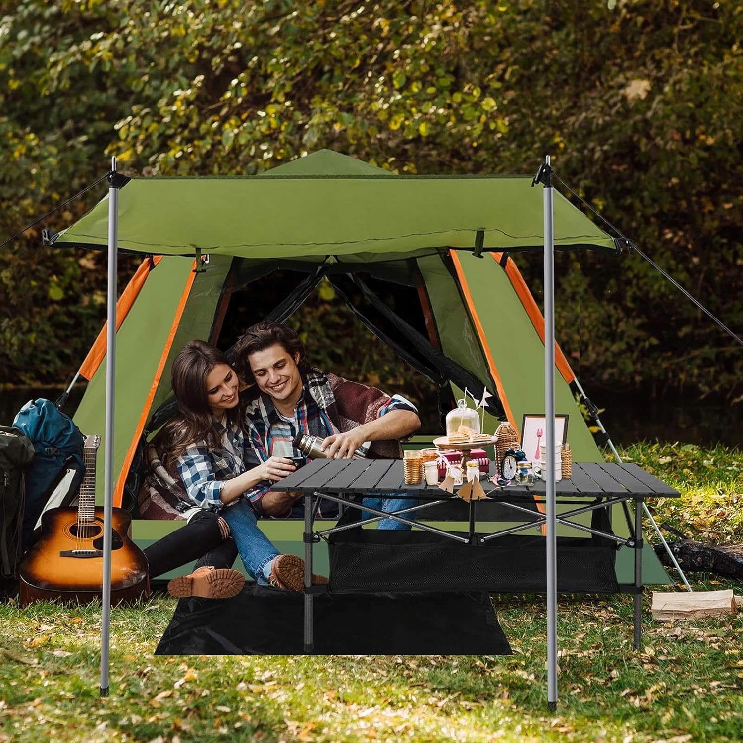Портативный лагерь изготовлен из алюминиевого сплава. Структурированные ручки с твердыми соединениями и разъемами, а также не солипные резиновые ножки для увеличения адгезии на разных поверхностях, благодаря которой таблицы стабильны на разных областях.