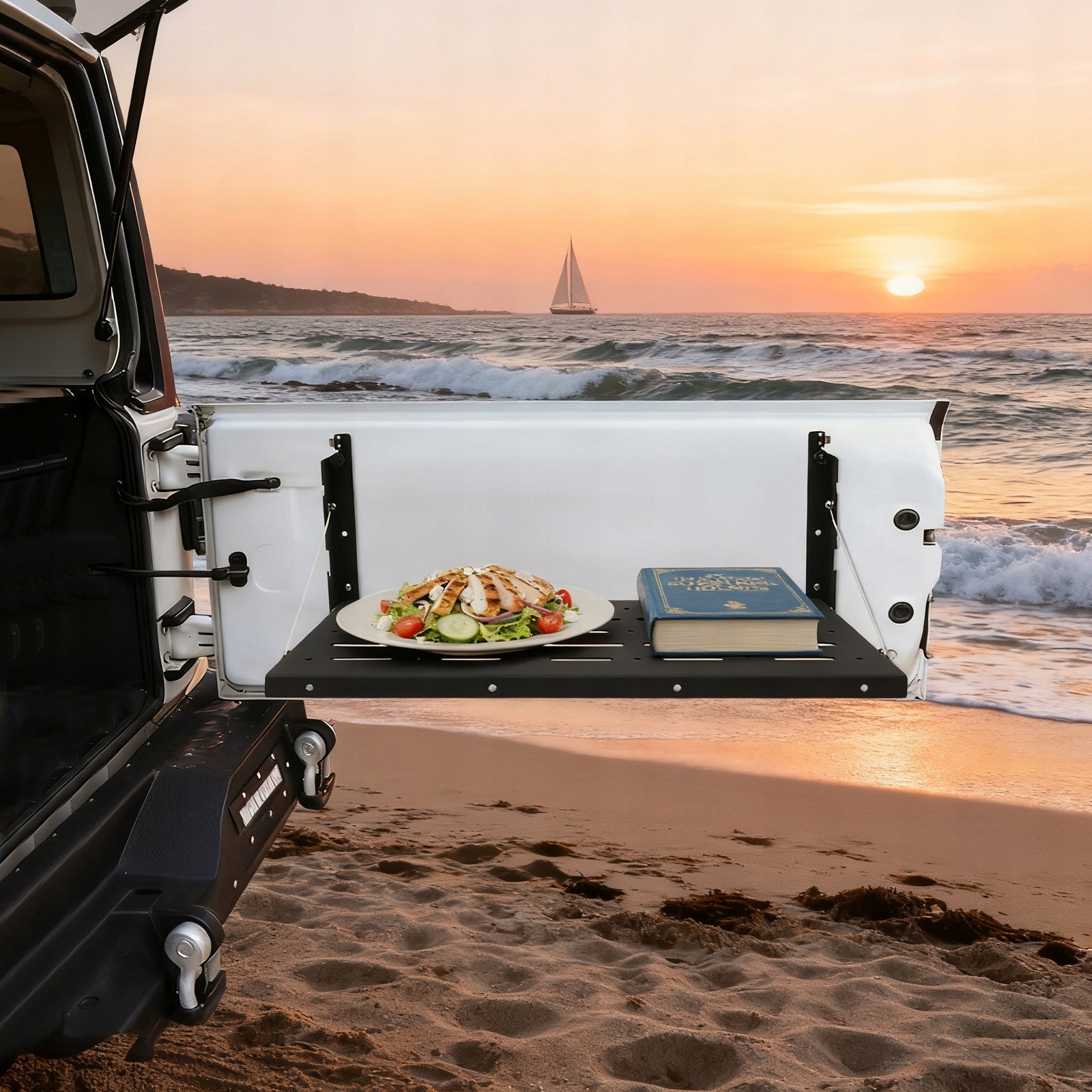 Наш складной стол задней двери изготовлен из высококачественной стали, которая прочна и обеспечивает длительное использование. Качественные материалы и устойчивая конструкция обеспечивают высокую несущую способность блюд и столовых приборов. Это настоящая находка для индивидуальных путешественников, приходите и привезите его домой!