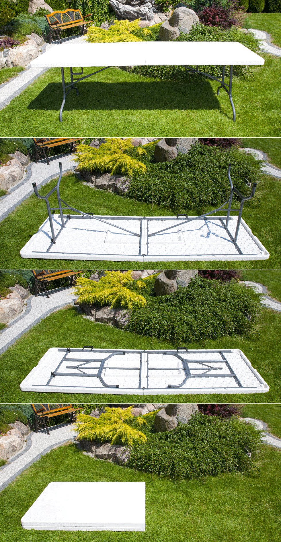 Складной обеденный стол — идеальный выбор для людей, которые ценят простоту и функциональность. Идеально подходит для мероприятий на открытом воздухе, банкетных залов, ресторанов и отелей. Также идеально подходит для сада. Стол имеет практичную ручку, благодаря которой его легко переносить, а в сложенном виде он занимает очень мало места. Металлический каркас гарантирует устойчивость. Столешница из полипропилена, 100% водонепроницаемая. Изготовлен из материалов высочайшего качества. Устойчив к вредным погодным условиям.