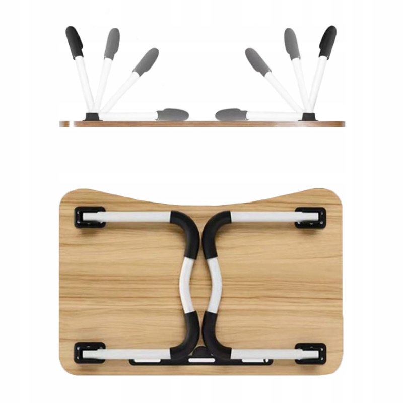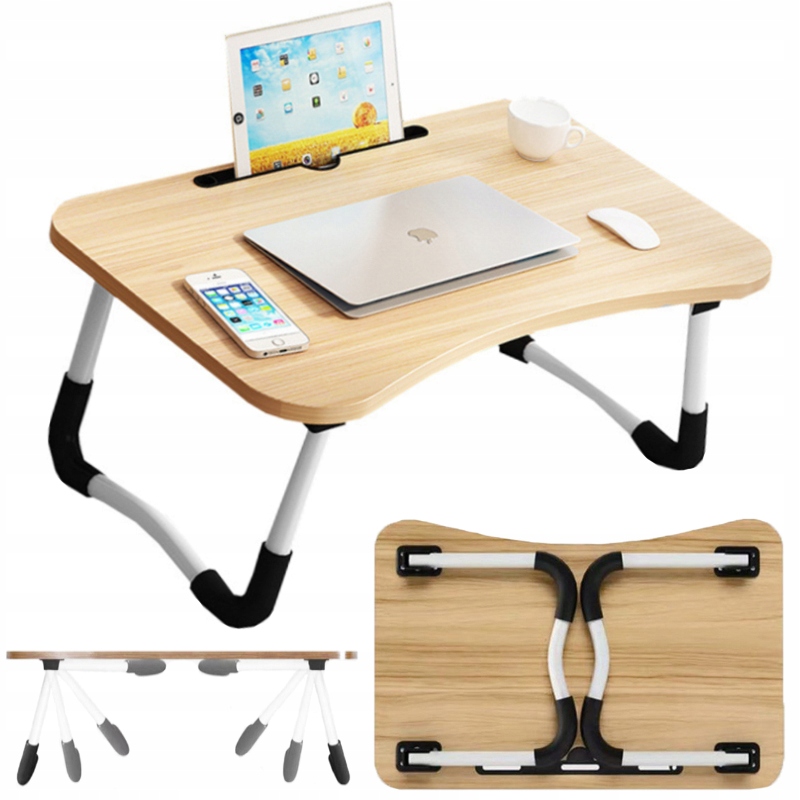 Компактный стол для компьютера или планшета. Идеально подходит для работы и игр дома или в путешествии. Он позволяет комфортно использовать ноутбук или другое устройство практически в любых условиях. В сложенном виде он занимает мало места, его можно легко спрятать, например, под кровать и всегда иметь под рукой. Оснащен профилированным углублением для планшета или телефона. Вы также можете перетащить зарядное устройство и заряжать эти устройства во время их использования. Мягкая нескользящая защита ног повышает устойчивость и защищает стол.