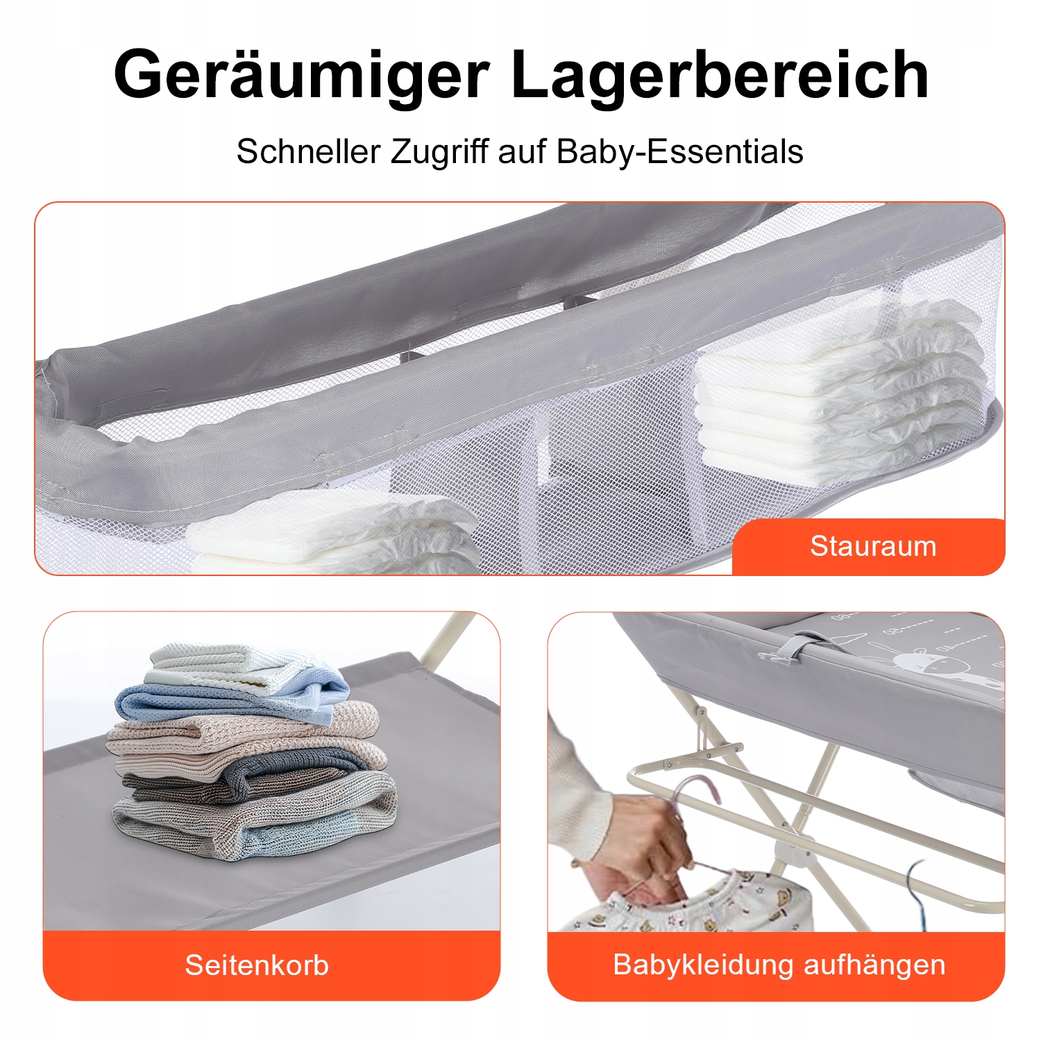 [просторное и организованное хранение] Оставайтесь организованными благодаря большому пространству для хранения подгузников, салфетков, кремов, детской одежды и многого другого. У него есть полки и сетчатая сумка для всех необходимых вещей для ребенка, благодаря тому, что все в пределах досягаемости. Боковая перекладина может разместить подгузники или одежду и т. Д.