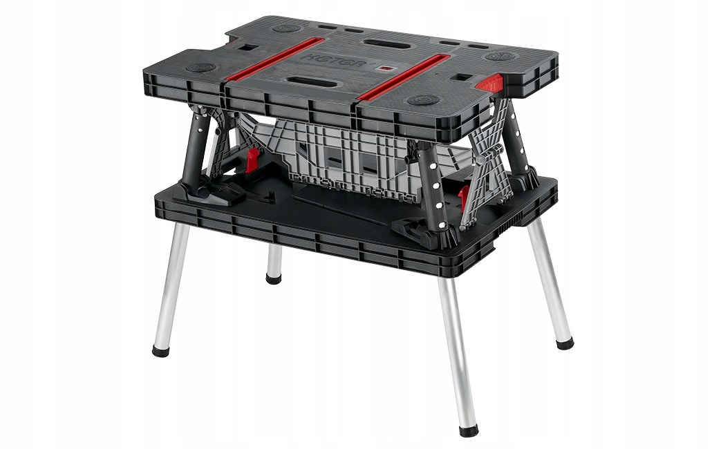 Складной рабочий стол позволяет организовать стабильное и легкодоступное рабочее пространство, позволяя работать в различных местах. Его универсальность и функциональность оценят как профессионалы, так и любители DIY. Стол имеет уникальную конструкцию, позволяющую просто и быстро складывать и раскладывать его всего за несколько секунд. Вам не придется его крутить и откручивать. Складной стол Work Table имеет две столешницы. Вы можете работать на верхнем столе, а нижний можно использовать для хранения полезных предметов, таких как отвертка, мелкие аксессуары, бутылка с напитком или закуски. Большая рабочая поверхность столешницы и стальные ножки обеспечивают устойчивость стола и выдерживают нагрузку до 453 кг. В комплект поставки стола входят два зажима длиной 30 см, которые можно использовать в качестве тисков. Благодаря компактным размерам в сложенном виде его можно брать с собой куда угодно. Мы уверены, что стол прослужит Вам долгие годы, сохраняя свои лучшие свойства.