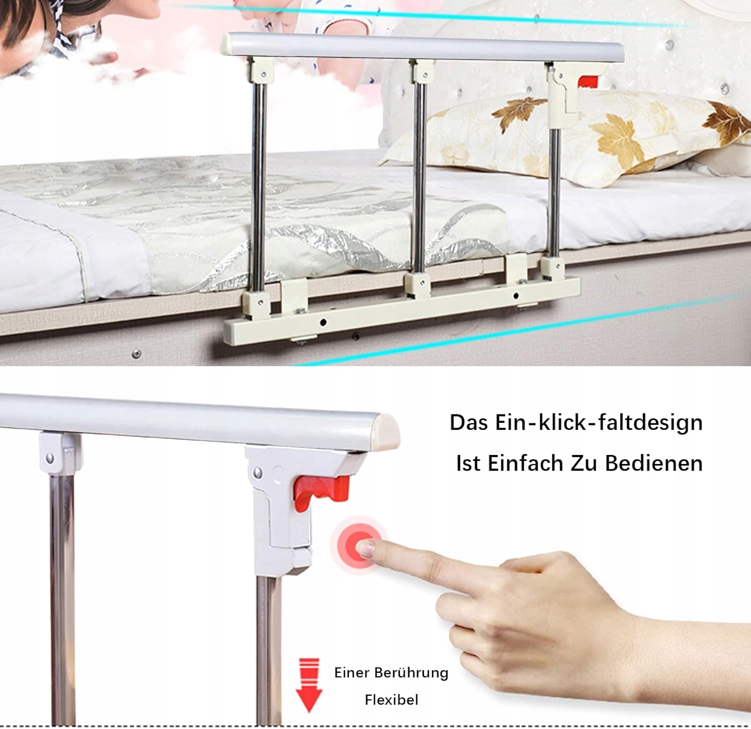 Складная конструкция: продукт отправляется с одной кнопкой, которая позволяет вам складывать или разворачиваться с одним нажатием. Это удобно и сохраняет работу, и операция проста; Размеры после развертывания: 70 х 40 см, расстояние: 23 см, размеры после складывания: 100 x 13 см; Операция очень дружелюбна. После установки проверьте стабильность установки, чтобы обеспечить более безопасное использование. Легкая сборка: этот продукт представляет собой поручни для монтажа без отверстий, оснащенный типом с подключаемой пластиной, установкой без отверстий, простой сборкой и затяжкой винтов; Тип с типом Z имеет высоту 8 см и подходит для подушек шириной 5-10 см. Широкий спектр приложений: благодаря современным концепциям дизайна этот продукт может быть интегрирован с различными стилями комнат. Он совместим с большинством типов кроватей, но не подходит для регулируемых кроватей. Подходит для пожилых людей, пациентов, беременных женщин, инвалидов, детей и т. Д. Это обеспечивает твердую защиту в общественных местах.