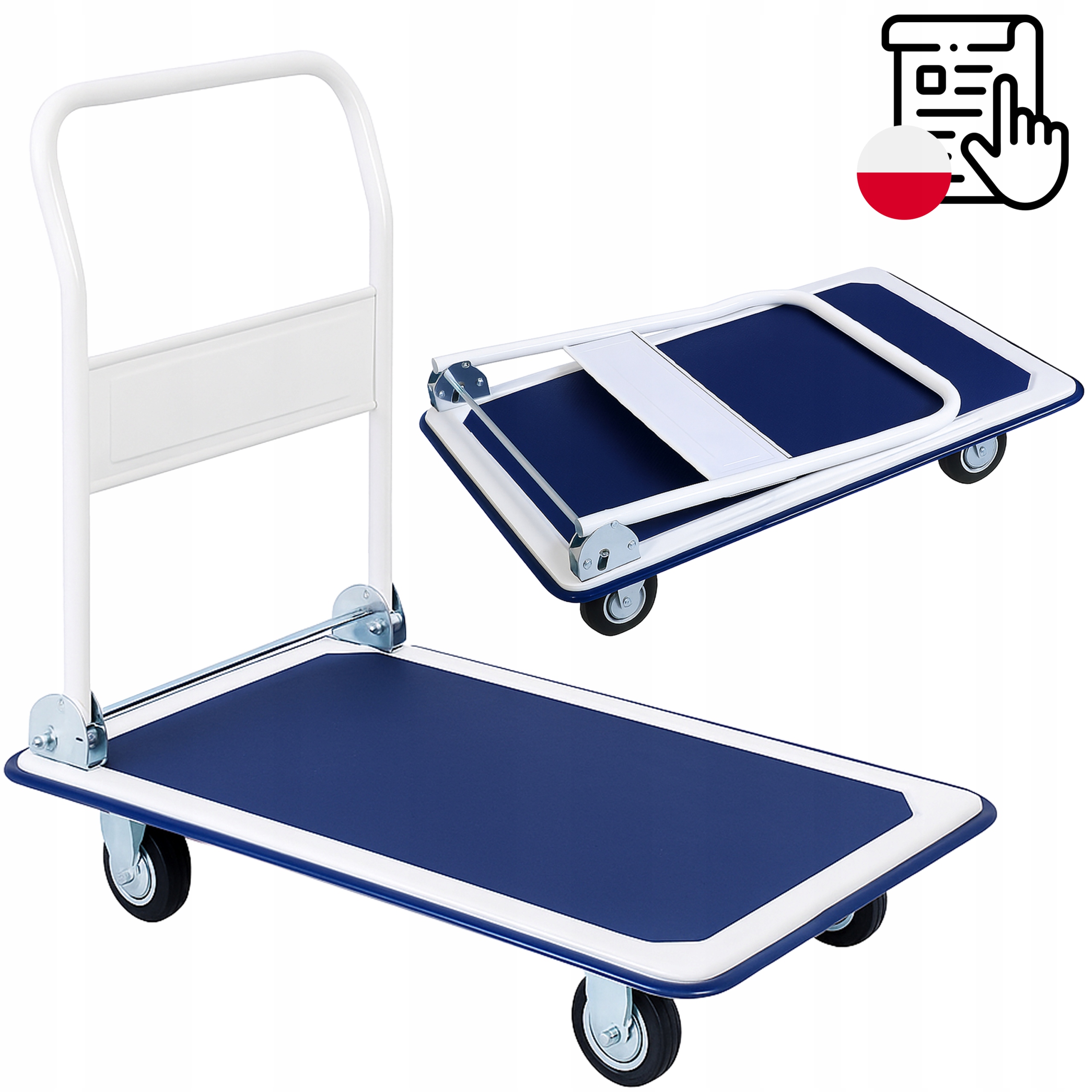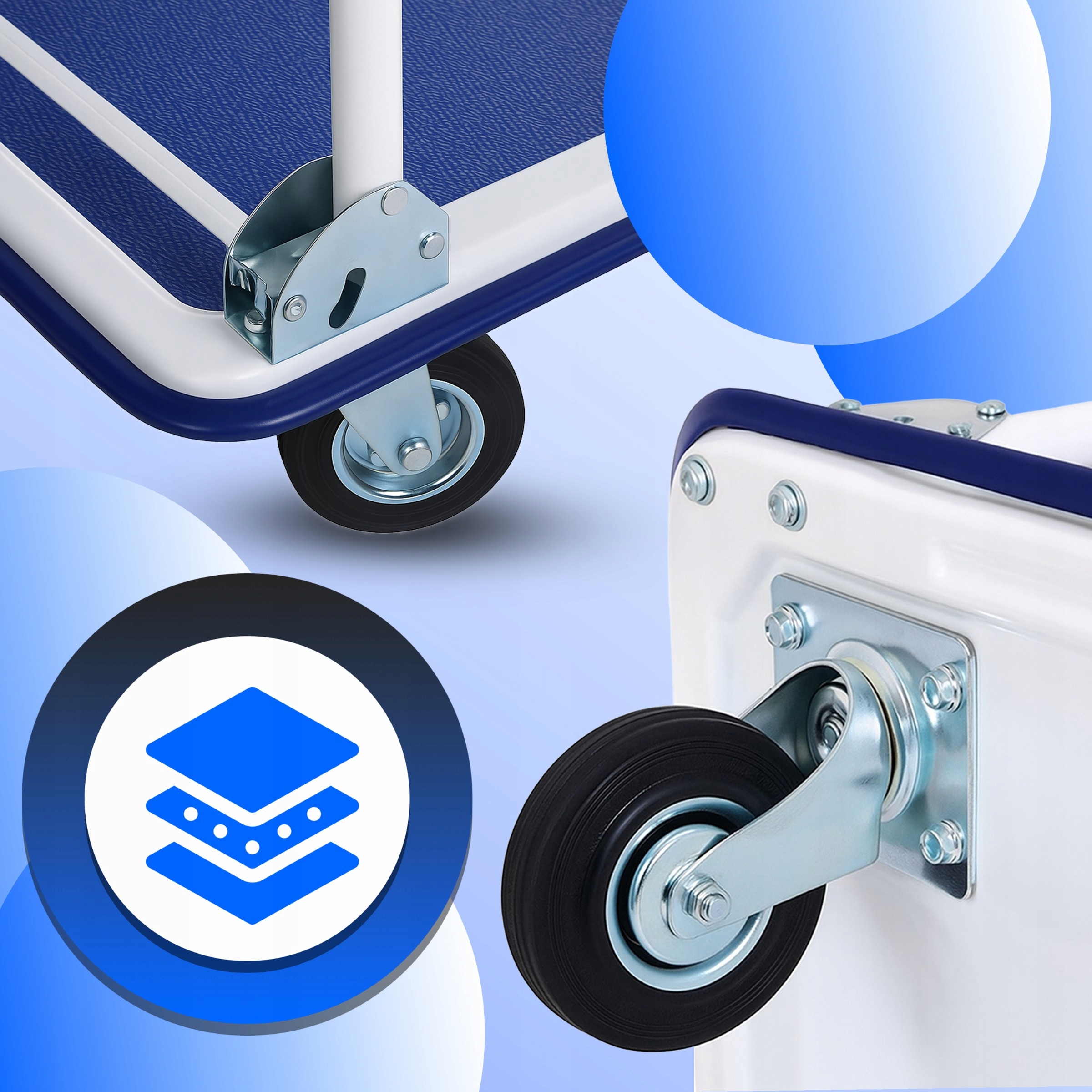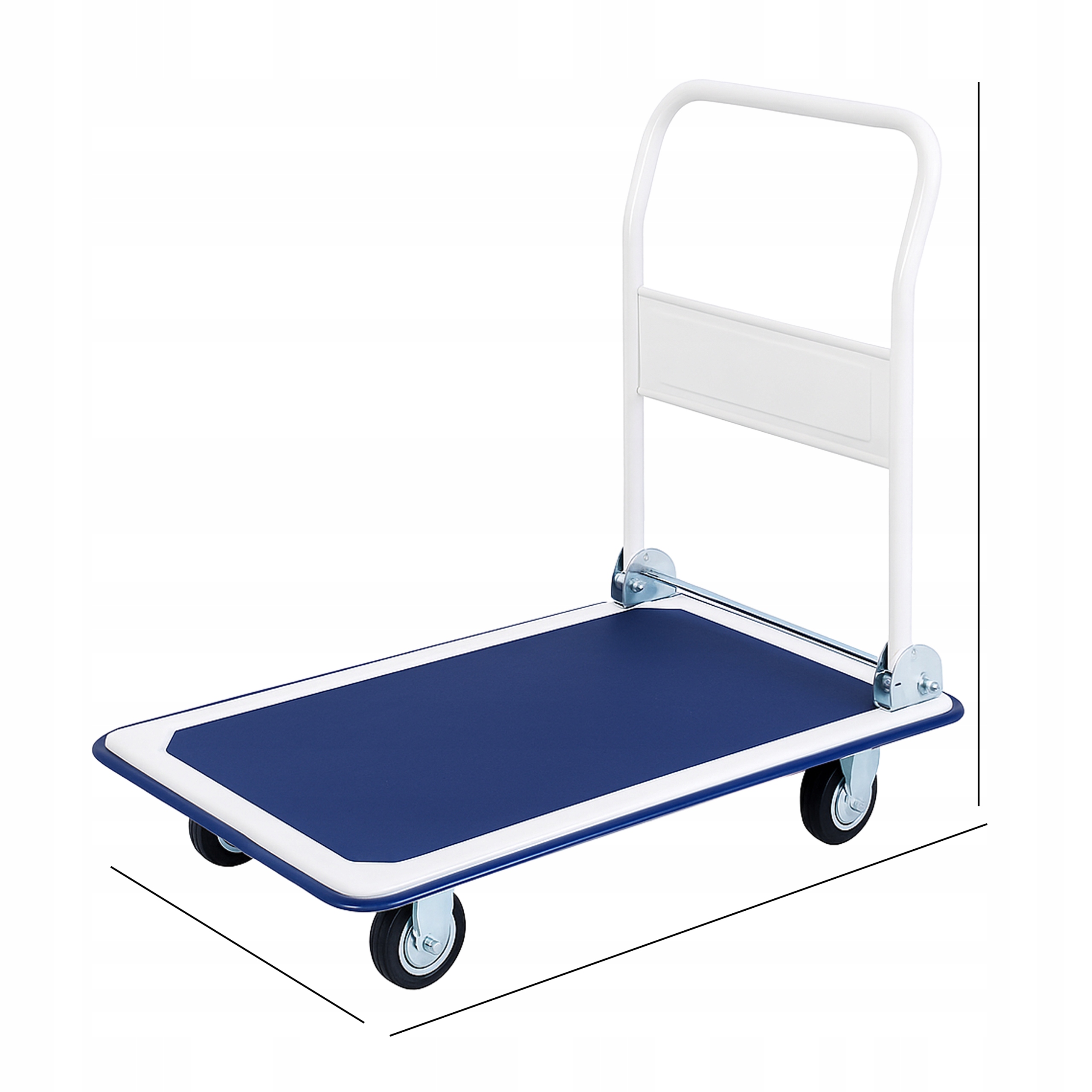 ✍️ Грузоподъемность 150 кг ☺️ Складная ручка ✔️ Противоскользящая поверхность ☀️ Устойчивая платформа ✏️ Компактная в сложенном виде ✉️ Простая сборка ♥️ Прочная конструкция ♠️ Прочные транспортировочные колеса ♣️ Усиленная рама ✔️ Цвет белый и синий ⭐