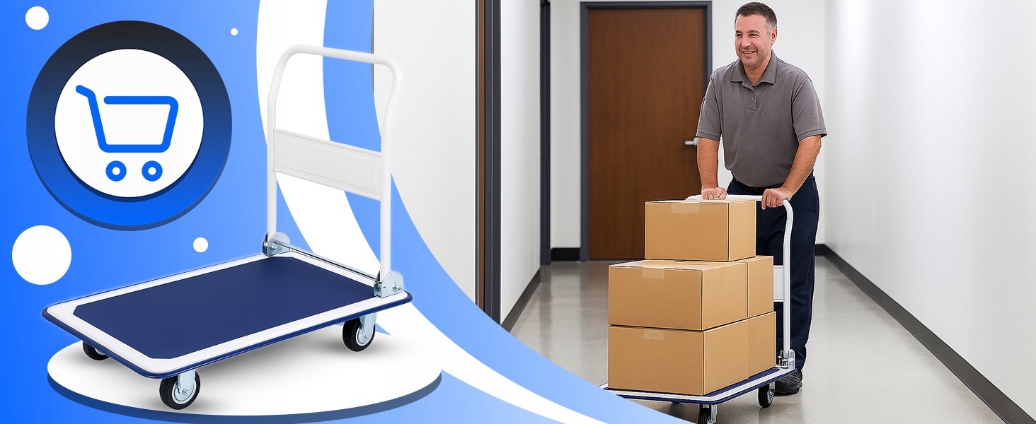 ⭐ КОМПАКТНЫЙ ДИЗАЙН – В сложенном виде тележка занимает мало места, что делает ее идеальной для склада, дома или мастерской.