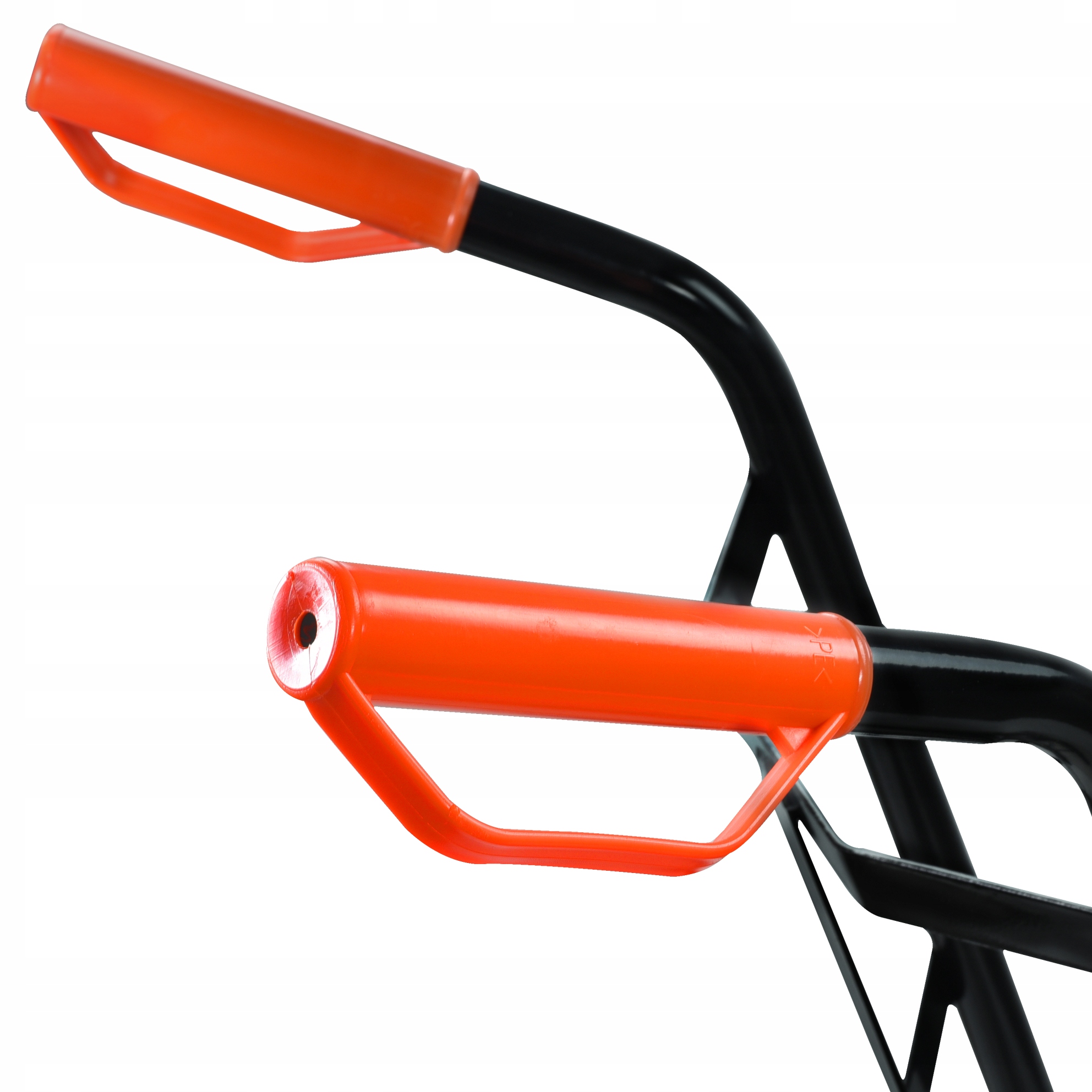 Коляска состоит из высококачественных сварных стальных профилей, что гарантирует долговечность и сопротивление механическим повреждениям. Кроме того, коляска имеет стальную пластину, размером 350 х 180 мм, которая достаточно толстая, чтобы сохранить тяжелые нагрузки без деформации. Эти функции делают коляску не только долговечной, но и безопасной в использовании