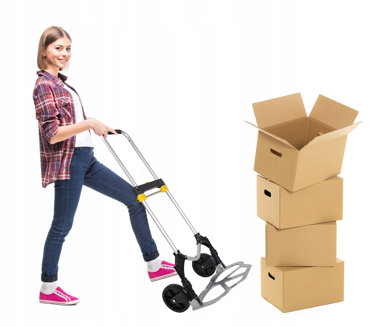 Это удобное решение для перевозки тяжелых грузов, напр. посылки, коробки, картонные коробки, пакеты и т. д.