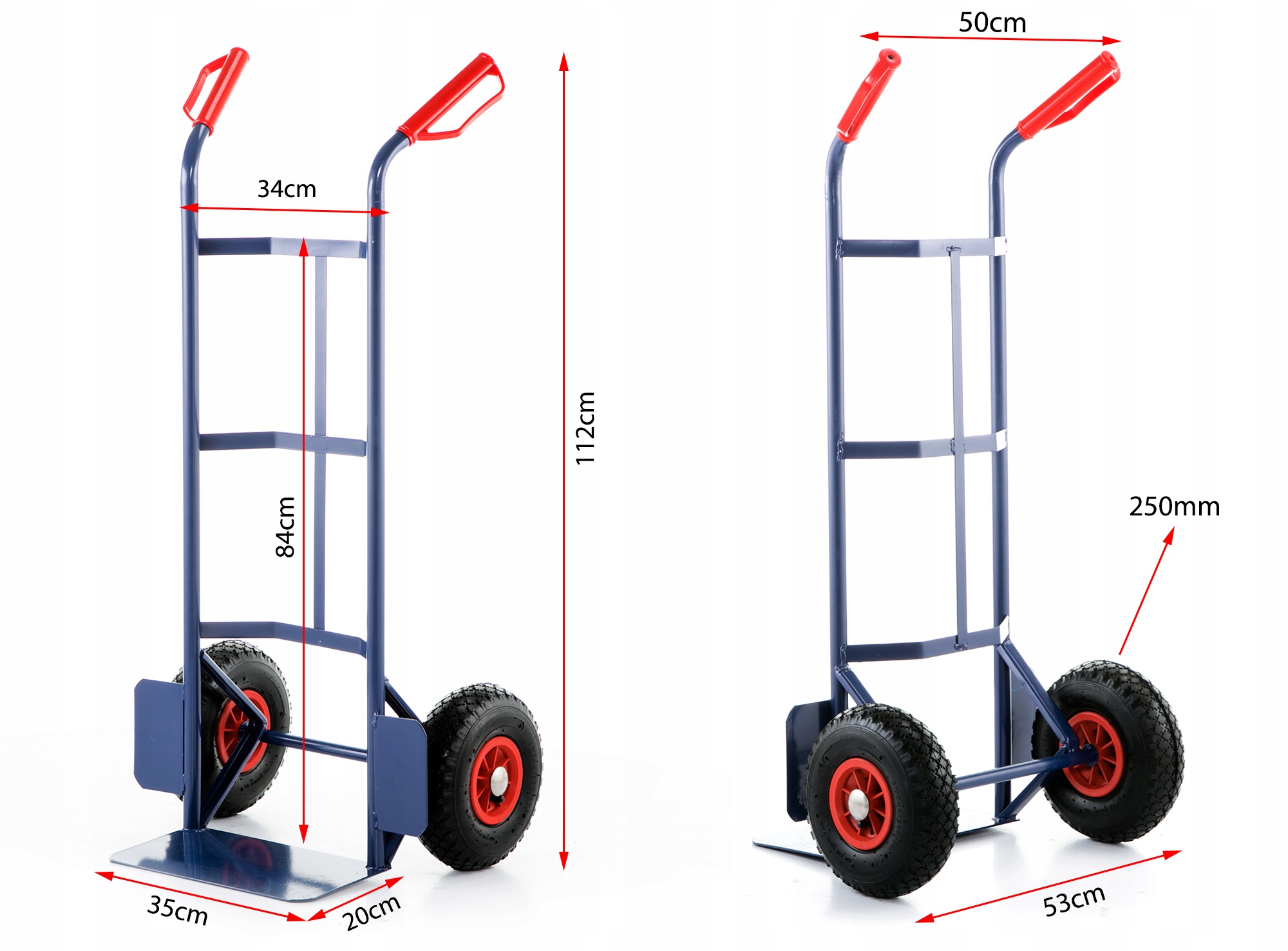 Практичные и прочные надувные колеса обеспечивают универсальность использования. Предлагаемые колеса легко покроют практически любой тип поверхности. Шины с резиновым протектором обеспечивают хорошее сцепление, а внутренняя камера обеспечивает амортизацию. Колеса имеют стальную защиту от механических повреждений.