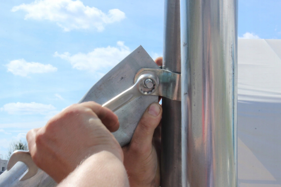 палатки предназначены только как временное пространственное решение и должны быть демонтированы в плохих погодных условиях. Пожалуйста, следуйте инструкциям по безопасности, содержащимся в инструкциях по сборке.