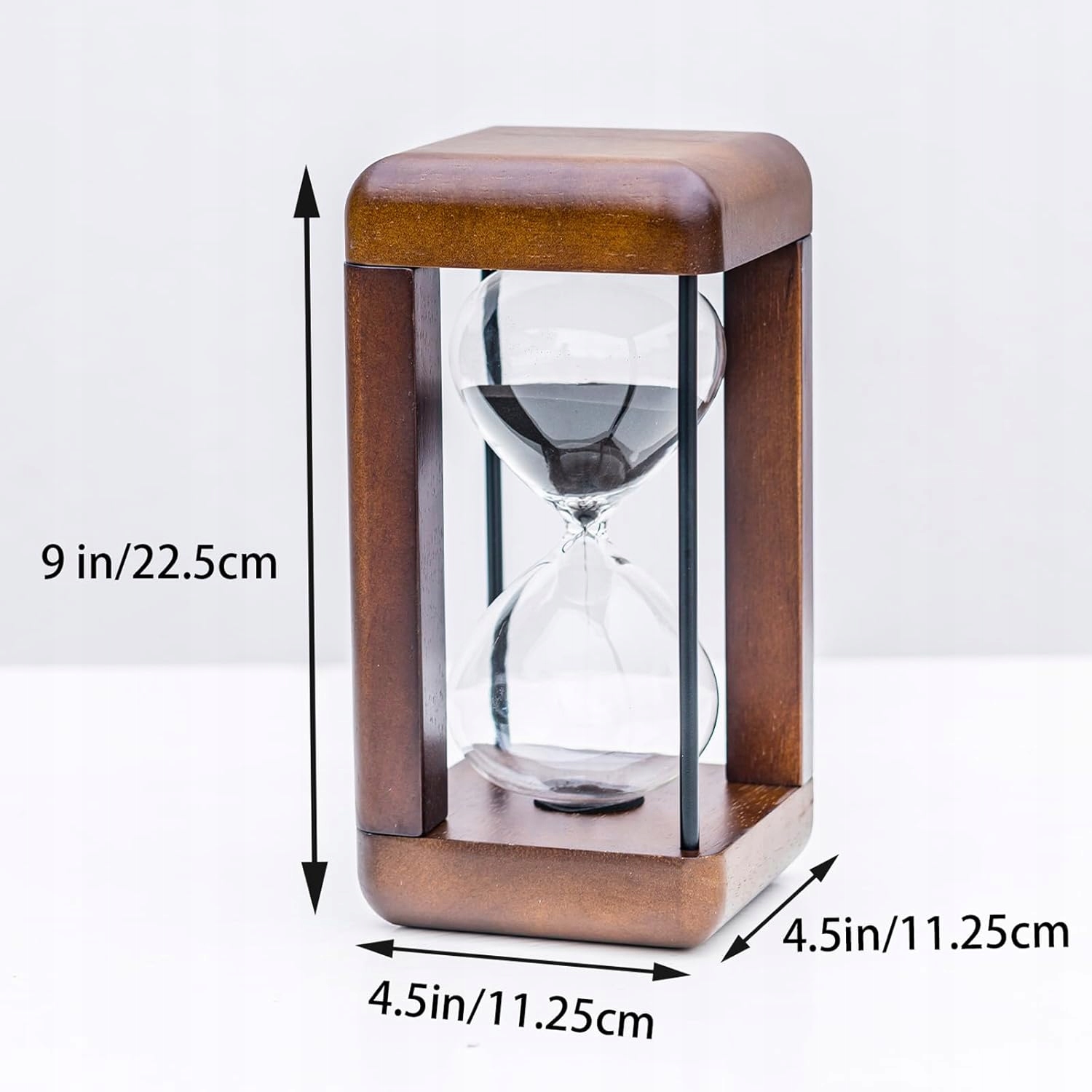- Эти песочные часы сочетают в себе красоту и практичность. Их размеры составляют 22,5 x 11,25 x 11,25 см.