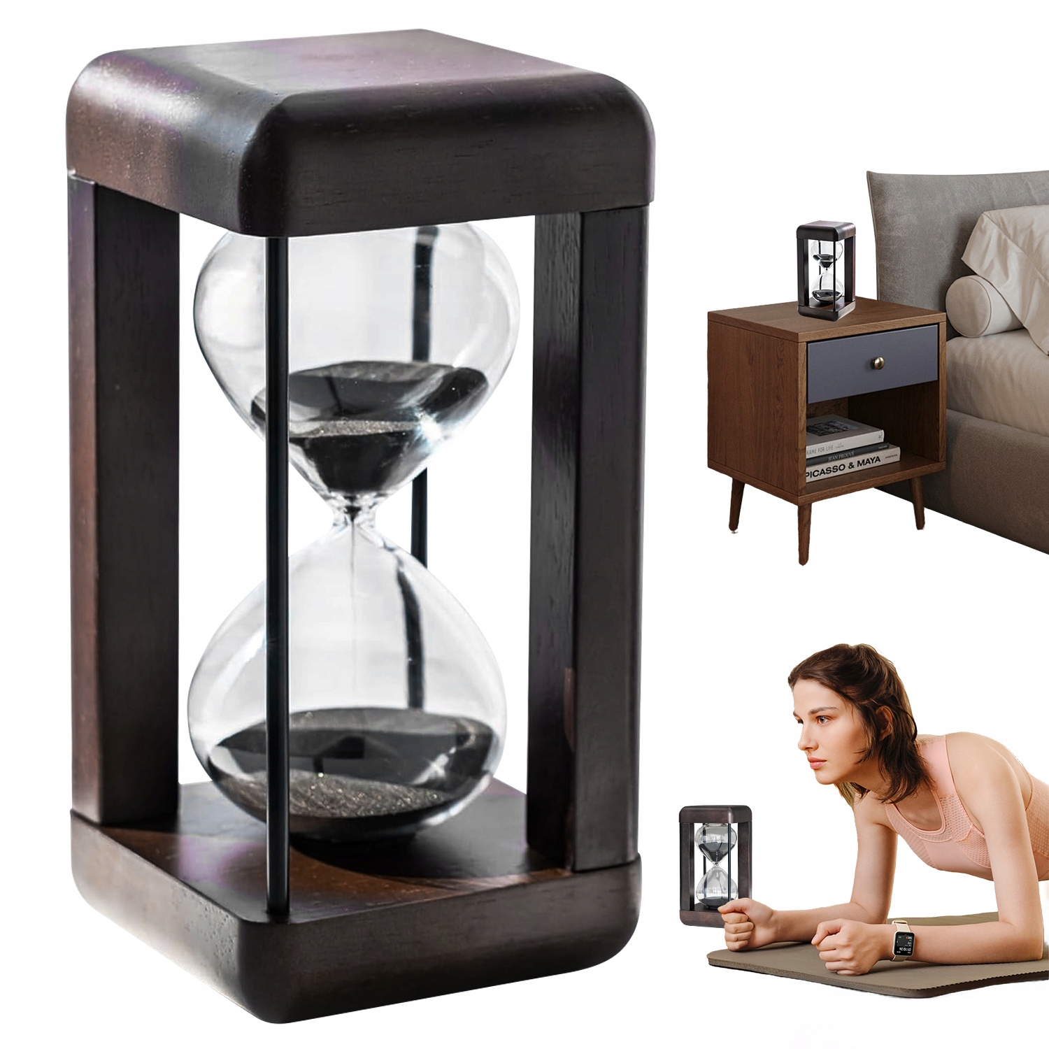 СТЕКЛО ДЕРЕВЯННЫЕ ПЕСОЧНЫЕ ЧАСЫ ПЕСОК 60 МИНУТ ДЕРЕВЯННАЯ РАМКА КРЕАТИВНЫЕ УКРАШЕНИЯ