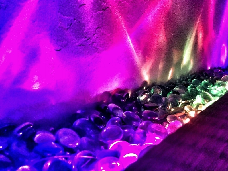 Вы можете добиться еще более потрясающего эффекта, подсветив композицию из стеклянных камешков, например, светодиодами.