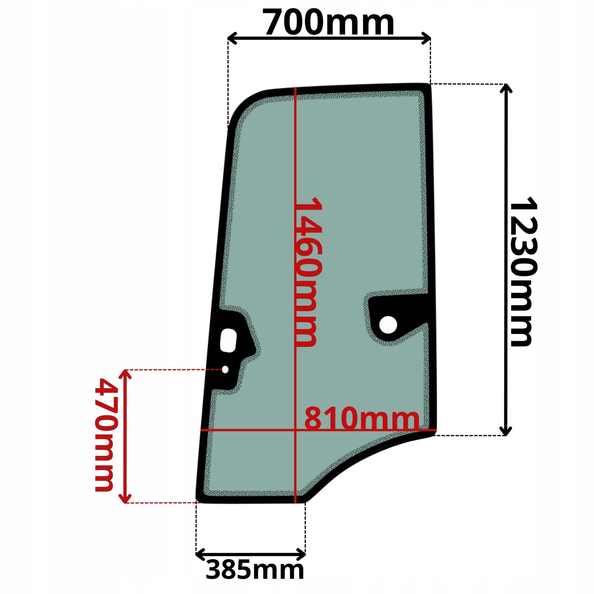 -note! Расстояние между отверстием ручки и нижним краем стекла составляет 470 мм.
