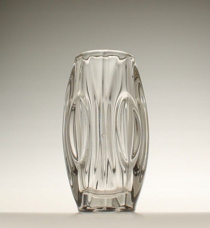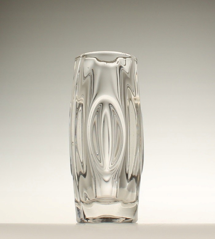 Ваза из бесцветного прессованного стекла. Дизайн Рудольфа Шрёттера для стекольного завода Розице. Чехословакия, 1950-е годы. Меньшая модель.