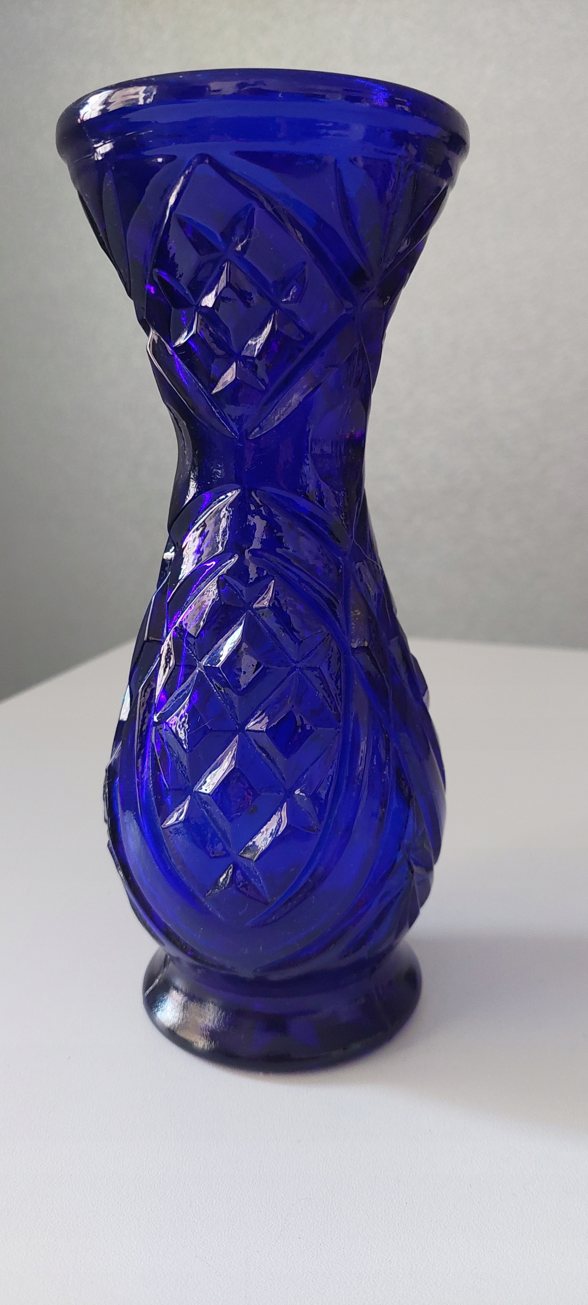 кобальтовая ваза с высотой размеров 21 см, диаметр инфузии 9 см.