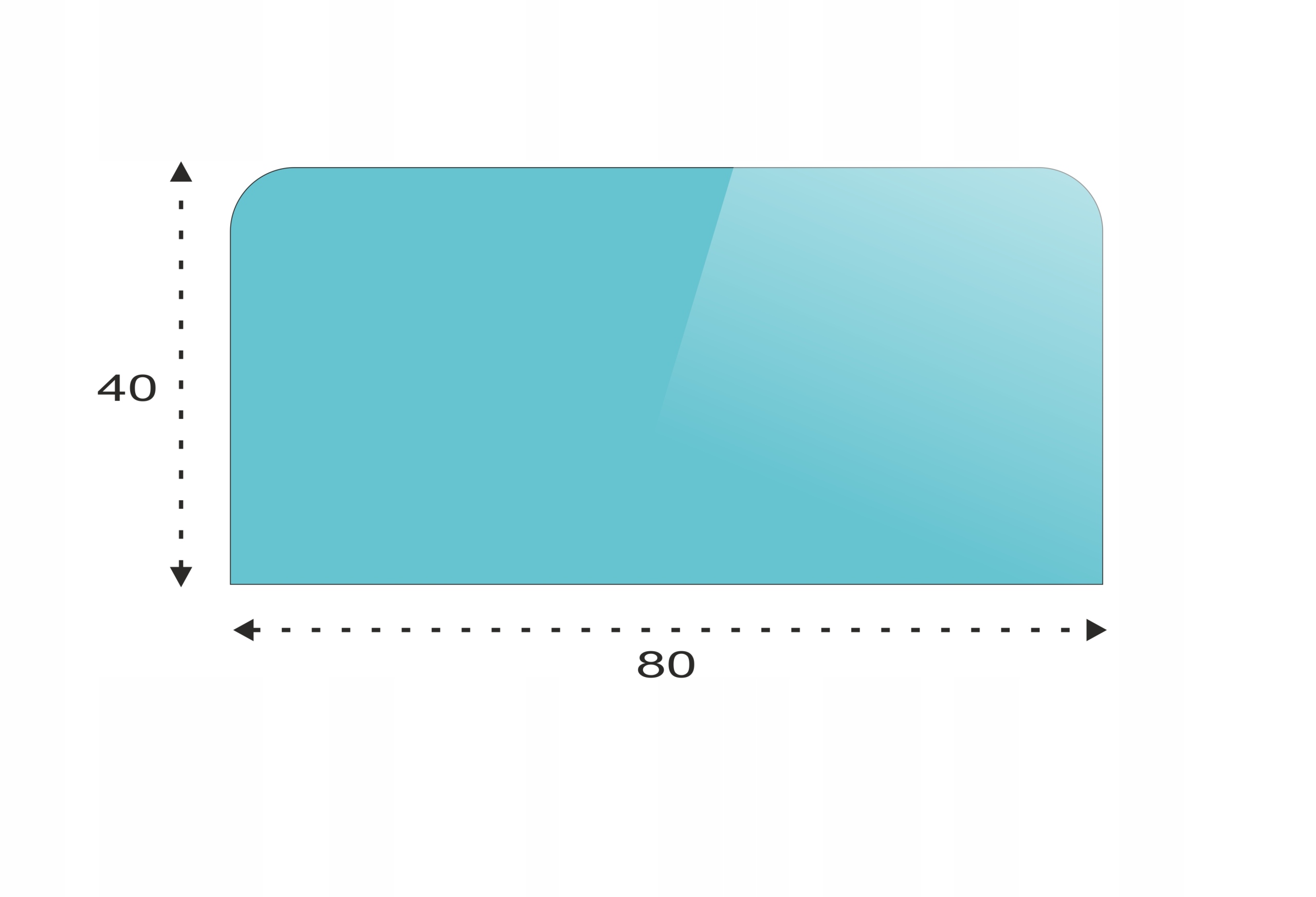 - 80 x 40 см + 2 закругленных угла (радиус r10 см)