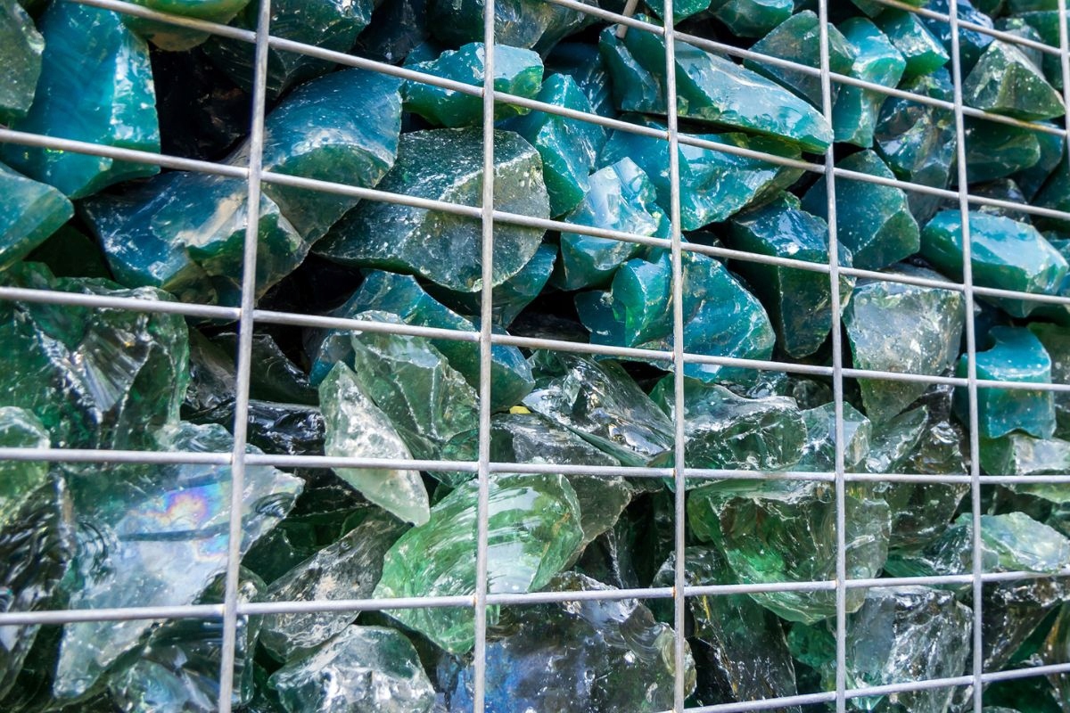 ➡️ Декоративные изделия из стекла характеризуются необычной структурой, зеленым цветом и нежным блеском, идеально подходят для габионных корзин и садовых украшений.