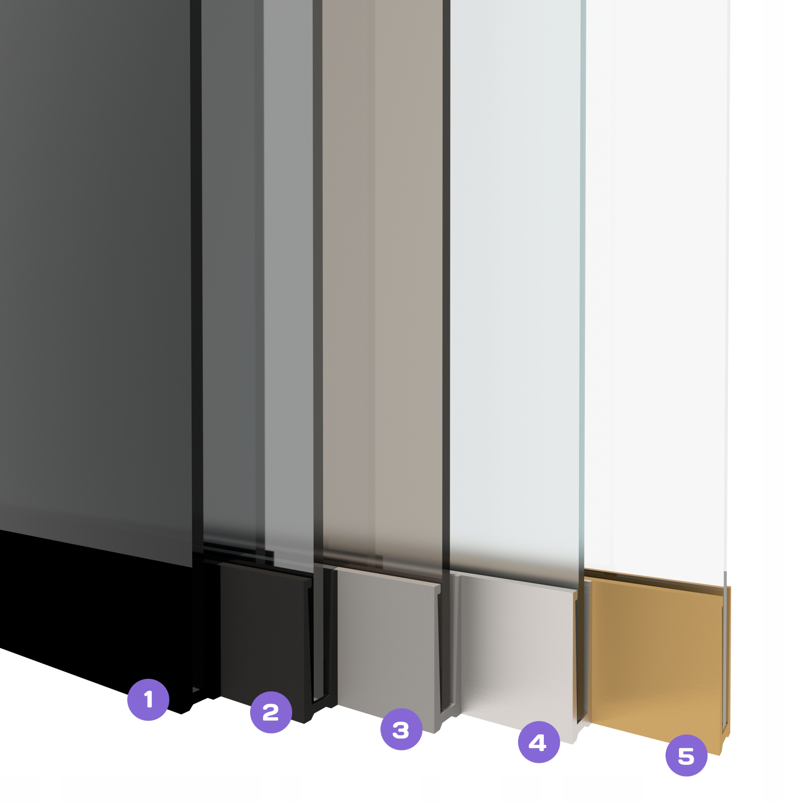 4. Алюминиевая полоса «U», закрепленная сверху выше атласной + ESG/VSG 66.2 Стекло Бесцветное