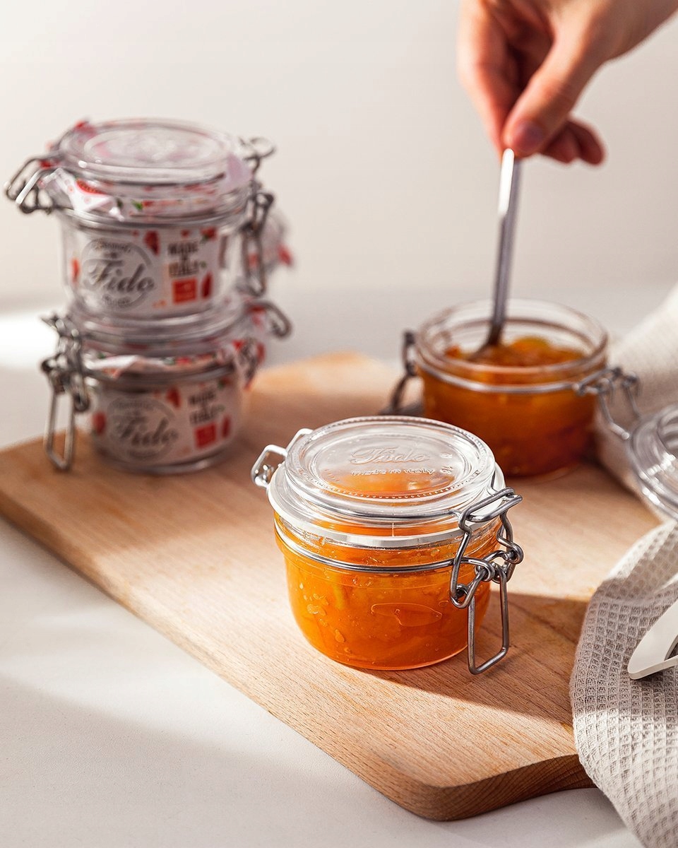 Банка Фидо имеет идеальную емкость для хранения специй и трав (125 мл). Благодаря металлической застежке и уплотнителю стеклянная крышка идеально прилегает к банке. Плотное закрытие гарантирует свежесть продуктов. Этот сосуд изготовлен из высококачественного стекла. Поэтому он чрезвычайно прочен и устойчив к повреждениям. Дизайн благородного минимализма делает его вечным продуктом.