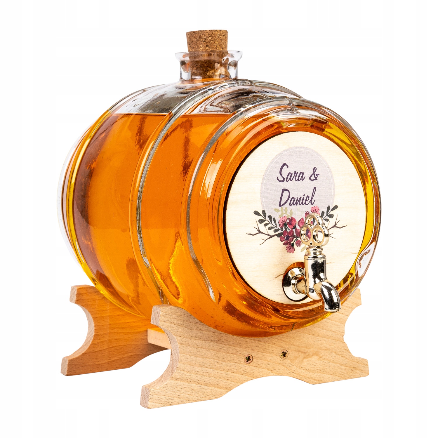 емкостью 4 л с краном и подставкой и ДЕРЕВЯННОЙ ТАРЕЛКОЙ в стиле РУСТИК на свадьбу, крестины, с ИНДИВИДУАЛЬНЫМ ПРИНТОМ.