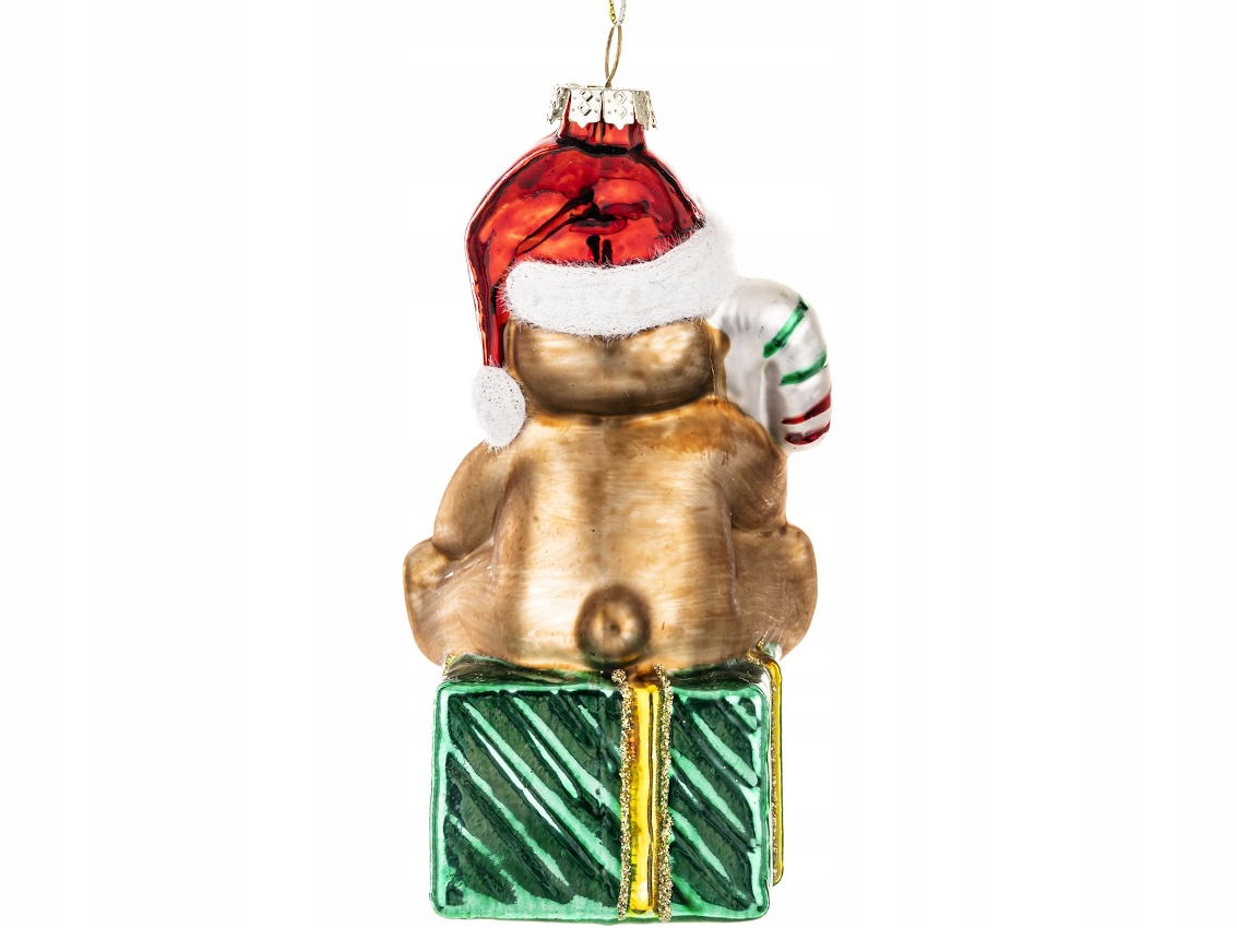 СКЛЯНА фенечка Ялинкова прикраса ВЕДМЕДИК НА ПОДАРУНКОВІЙ КОРОБЦІ - Різдво