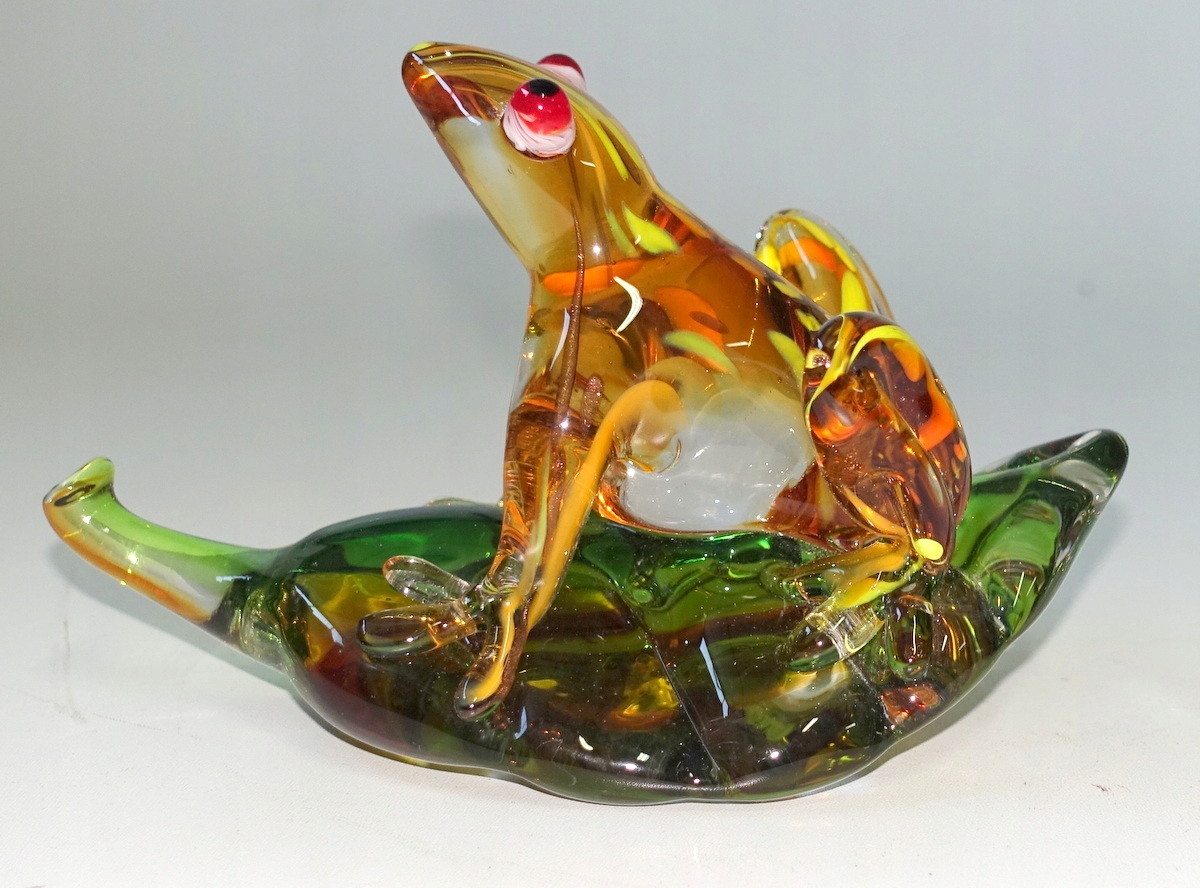 Статуэтка изображает красоту красивой лягушки, отдыхающей на листе; отлично сделано. Пожалуйста, обратите особое внимание на точность его изготовления (выполнено в итальянском стиле Мурано) и уникальные цвета.