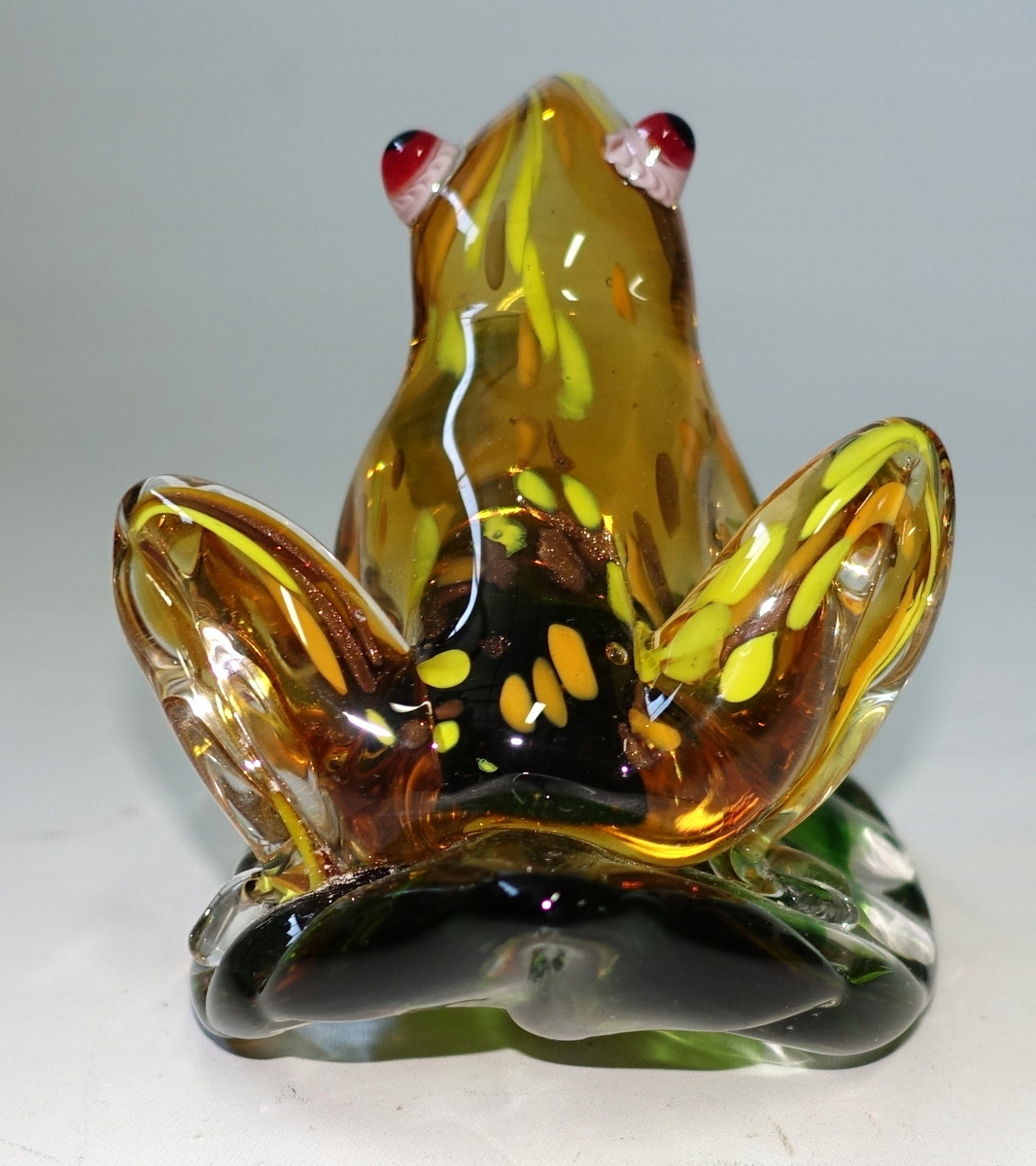 Скляна фігура жаби на листі муранського ар-деко СКЛА