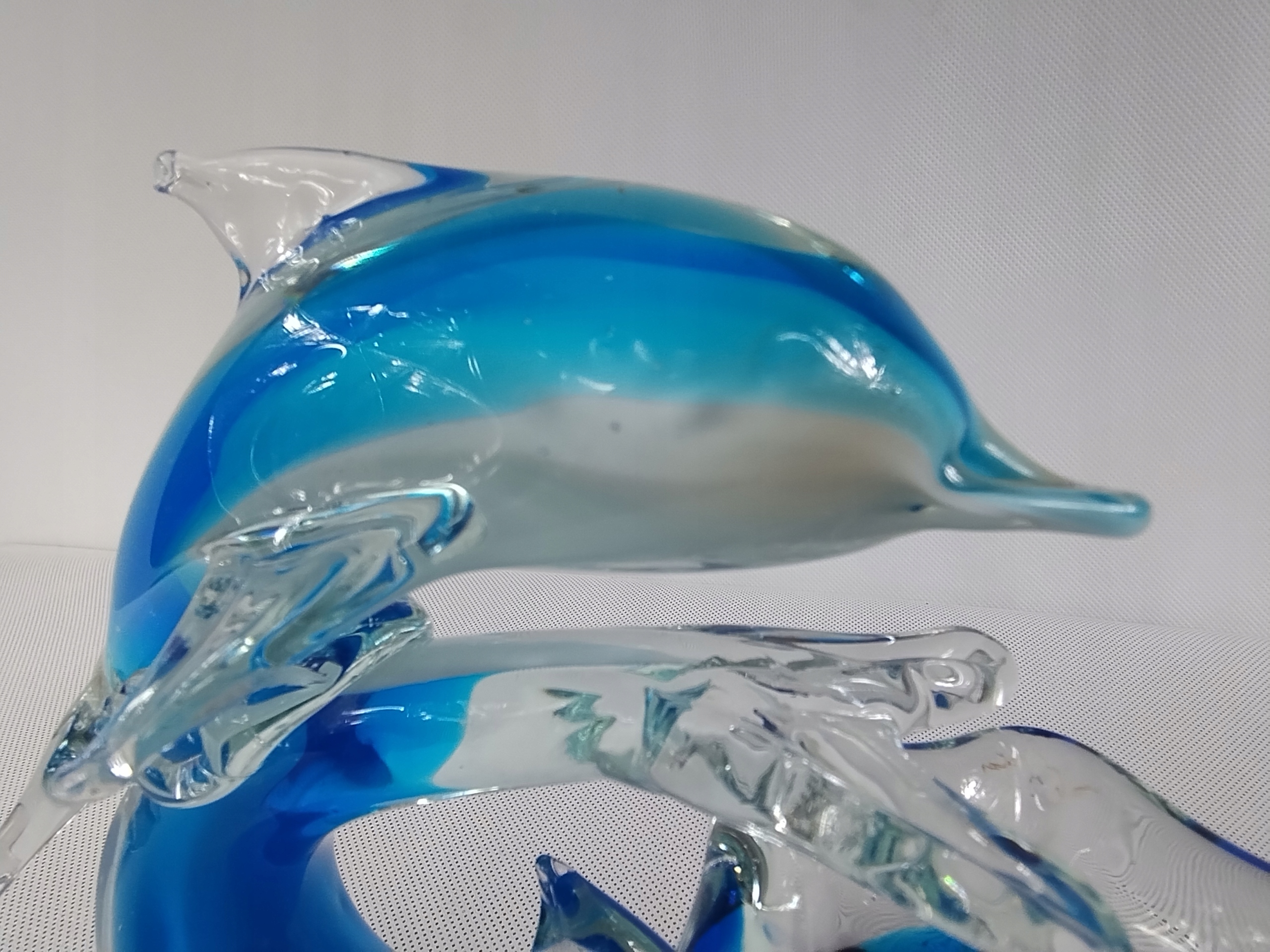 Для продажи стеклянной фигурки с изображением двух плавающих дельфинов. Фигурация характеризуется очень хорошим условием, что делает ее идеальным выбором для любителей уникальных украшений. Часть)/8 см (узкая часть)