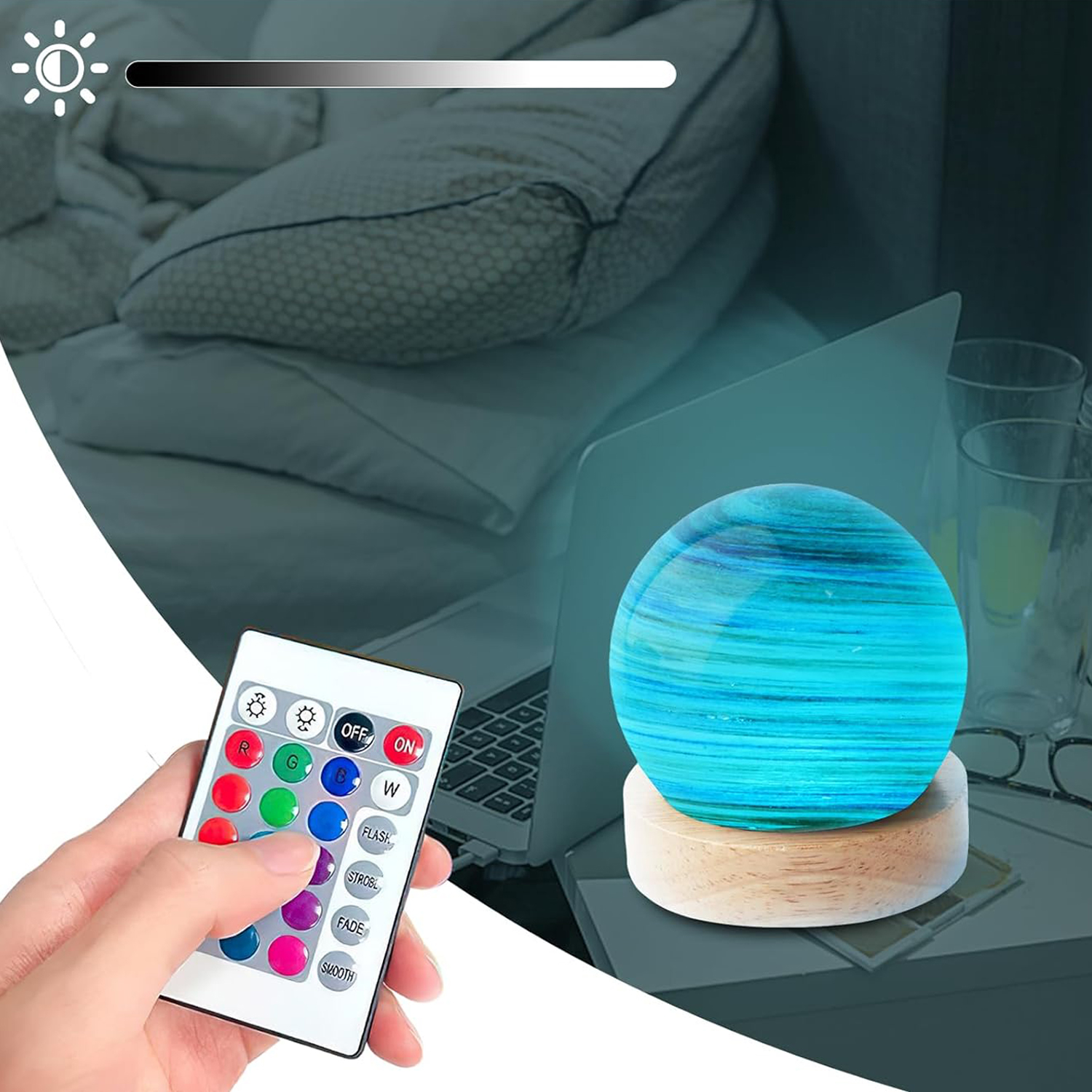 СКЛЯНА КУЛЯ НІЧНИК НА СТОЛ LED ДЕКОРАТИВНА ПЛАНЕТА ПОДАРУНОК + ПУЛЬТ ДИСТАНЦІЙНОГО КЕРУВАННЯ